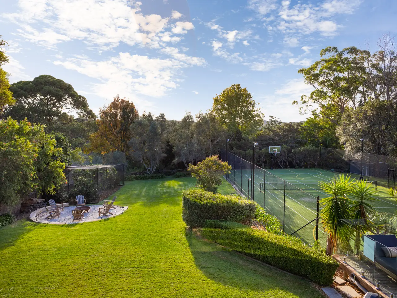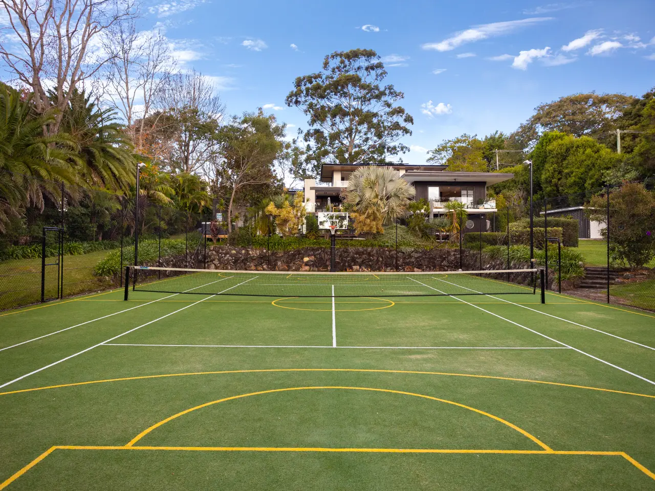 A family entertainer of extraordinary dimensions and quality, this residence delivers resort-style luxury with phenomenal views spanning across Ku-ring-gai National Park. Nestled within a full acre and surrounded by some of the most pristine and private bushland on the peninsula, it offers a series of sensational living and entertaining zones across three flawless levels, embraced by sunlit Travertine terraces and vistas as far as the eye can see. Designed and master-built as the ultimate coastal getaway, the home underwent a full renovation and expansion in 2021 with a stunning array of fine finishes and premium-quality appointments; it has the feel of a five-star wellness resort, complete with a heated saltwater pool, spa, full-sized tennis court plus an exquisite poolside cabana. - Fully renovated and expanded; master-built from end-to-end in 2021 - Superb design with exceptional quality across three levels - Ultimate entertainer: vast terraces extend off all main living zones - 11m heated pool, tennis court, spa, outdoor kitchen, poolside cabana - Deluxe kitchen features an off-form concrete island, Miele appliances plus a fully-equipped butler's pantry and adjoining wine cellar. - Entire top floor given over to a sumptuous parent retreat w/lounge - Lavish guest suite on main level with lounge, private deck + ensuite - Bedrooms with custom-designed robes; all open to decks or terraces - Double-sided gas fireplace, ducted climate control, 13kw solar power - Orchard includes lemon, lime, oranges, figs + raised vege gardens