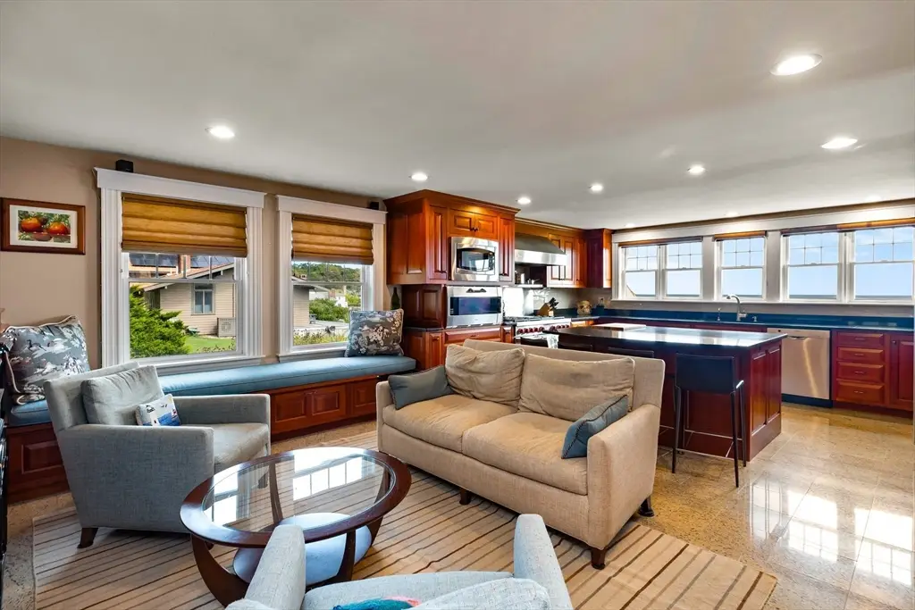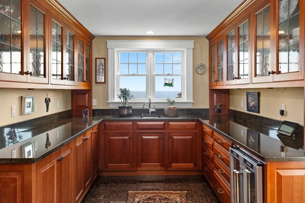Nestled within a picturesque seaside community, this sizable and sophisticated formal home has elegance and charm. It coasts expansive views of the ocean creating a backdrop that shifts with the rhythms of the tide and the changing colors of the sky. The grand entrance welcomes you into a impressive foyer with soaring ceilings and polished marble floor. The flowing layout includes multiple living spaces each bathed in natural light. The living room accentuated by a fireplace and French doors leading to the patio invites both intimate gatherings and grand entertaining. a well-equipped kitchen with a separate spacious pantry, top of the line appliances, custom cabinetry and granite counter tops adjoins a cozy family room that leads to a formal dining room with ocean views. The spacious principal bedroom has a sunroom and well appointed bath. Meticulously cultivated garden with koi ponds , a private path to the ocean edge and a roof top deck. This is a true haven by the sea.