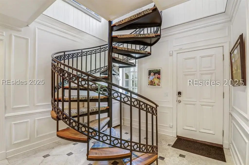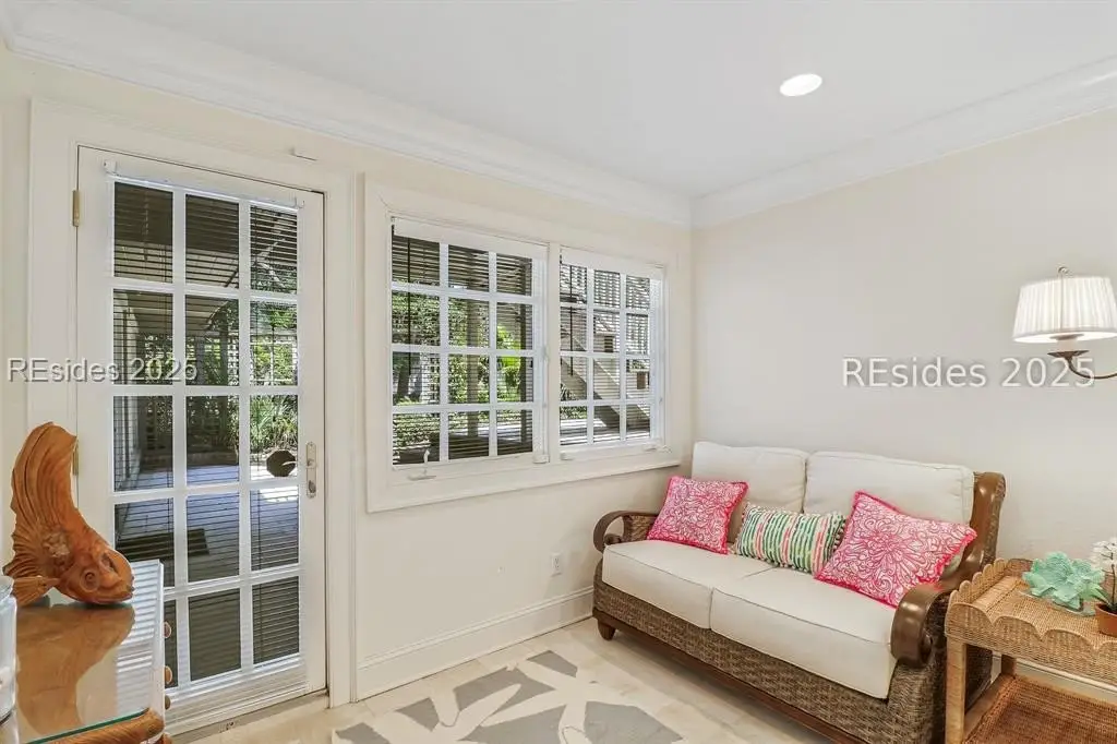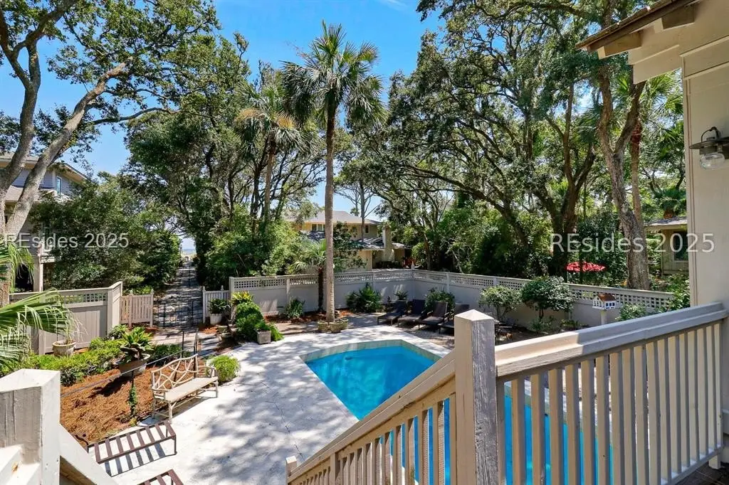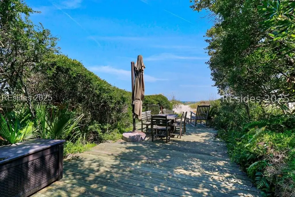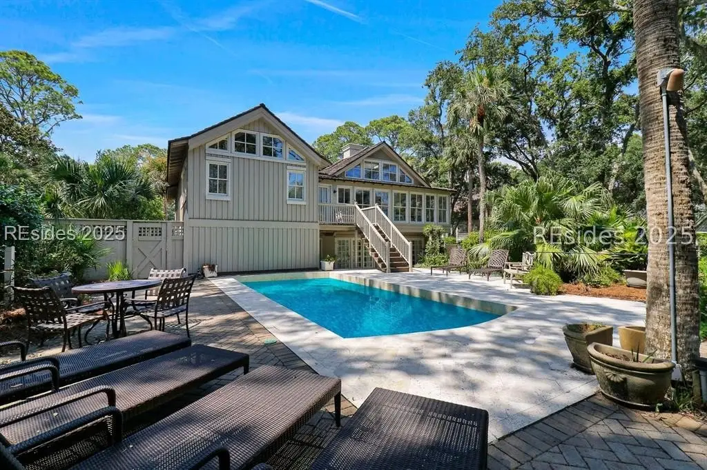 Welcome to 30 E Beach Lagoon, a stunningly remodeled oceanfront home located on one of Sea Pines' most prestigious streets. Rarely does a property blend luxury, charm, and location this seamlessly. Designed with timeless coastal elegance, this home offers an exceptional lifestyle with 5 bedrooms, 5 baths, and just steps from your private deeded beach access. Inside, soaring vaulted ceilings with exposed beams, a masonry brick fireplace, and wide-plank wood floors create a warm, inviting atmosphere. The kitchen features high-end natural wood cabinetry, sleek countertops, and stainless steel appliances ideal for entertaining or quiet mornings at home. The main house flows beautifully into a spacious living area filled with natural light, while the private, attached guest house offers flexibility for hosting friends or extended family. The primary suite features a private deck with peekaboo ocean views and easy access via the in-home elevator. Outside, enjoy your own private pool surrounded by lush, mature landscaping, creating a serene retreat that feels both secluded and coastal. The home also includes a two-car garage and has never been used as a rental, offering pristine condition and pride of ownership. Whether you're searching for a luxury second home or a high-performing short-term rental, 30 E Beach Lagoon delivers on all fronts location, design, and lifestyle all within the gates of Sea Pines Resort.