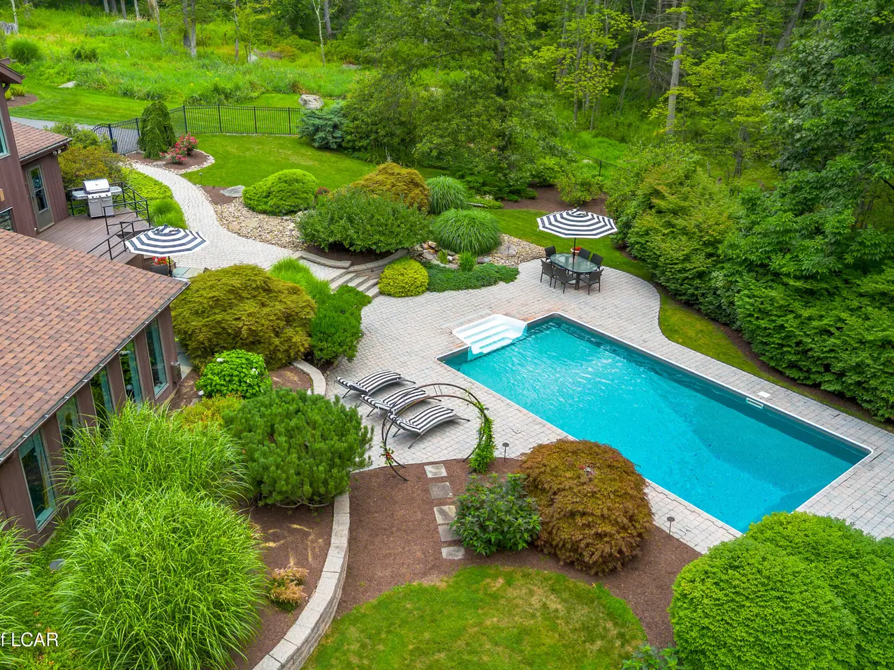 Architecturally distinct contemporary provides privacy with a backyard oasis on two plus acres at the end of a cul-de-sac in Bulford Farms! This beautifully designed two story offers four beds, five baths, open floor plan, vaulted ceilings, walls of windows, luxury kitchen & baths, and a master suite with fireplace. Enjoy a pristine pool, water feature, fenced yard, lush landscaping, and expansive deck & patio. Don't miss this rare opportunity to own a one-of-a-kind Shavertown!