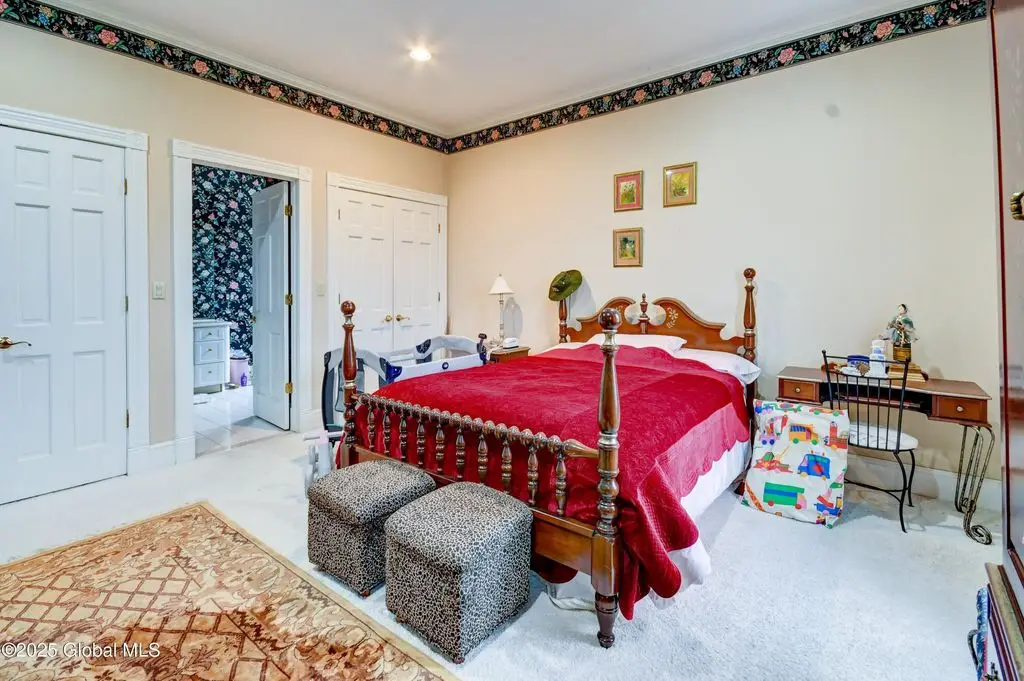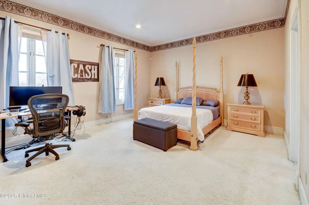 Step into this elegant & luxurious custom home set on a lovely 2.19-acre lot with beautiful mountain views. Located in the prestigious Sage Estates Gated Community in Loudonville. Property features a three-car garage. French doors open to a classic columned veranda. Upon entering, you'll be welcomed by a grand foyer with a magnificent staircase, marble floors, & a stunning crystal chandelier. The spacious kitchen is perfect for family gatherings & with over 8,000 sq ft of living space, it's an entertainer's dream. Main level also offers a primary suite, dining room, living rooms & offices while the upper level includes three additional primary suites with balconies. The finished basement boasts a home theater, gym, bedroom, bonus rooms & two full bathrooms. HOA covers gate, pond, tennis courts. Must see!