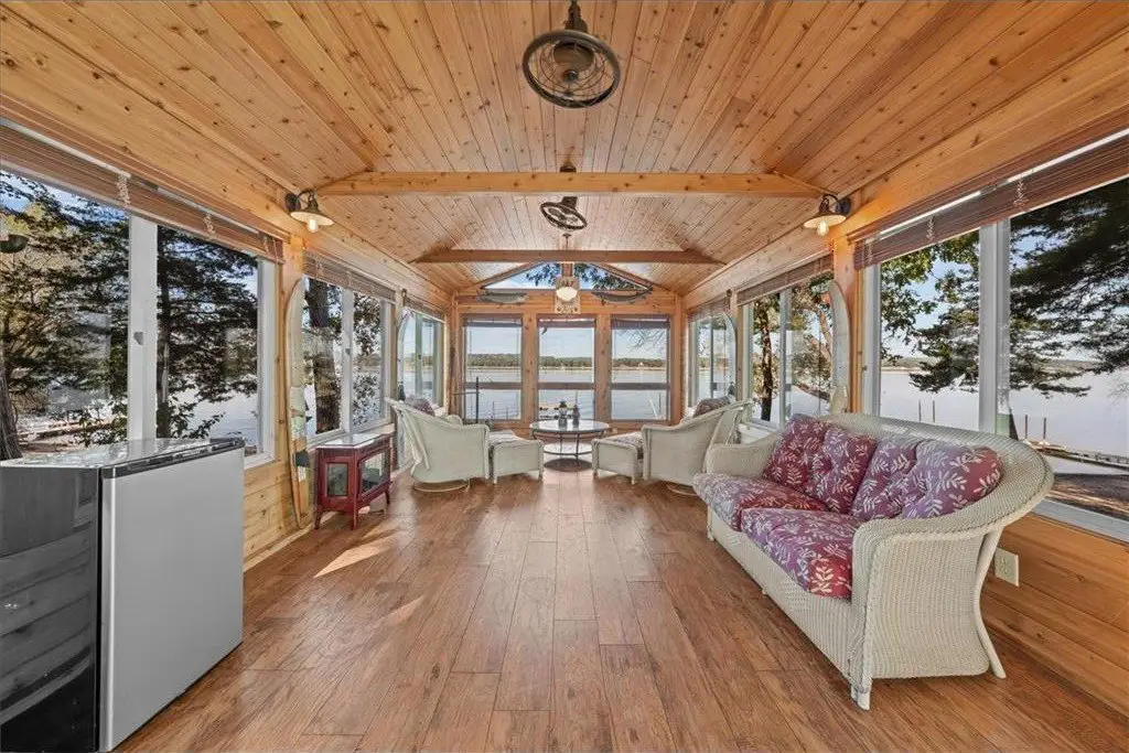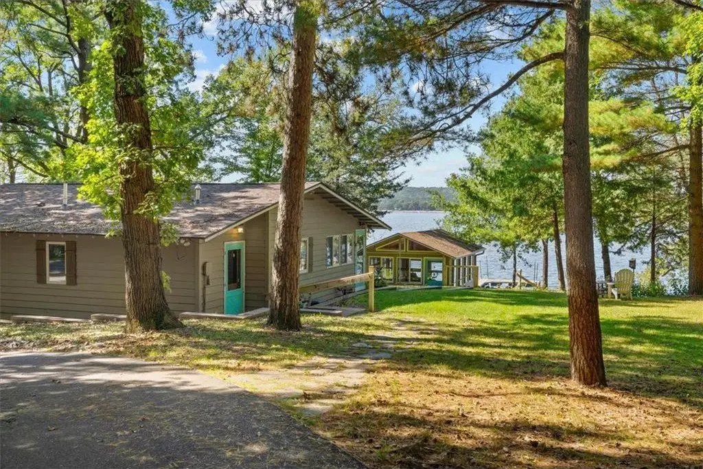 RARE opportunity to own 224 ft of pristine sandy shoreline along the legendary St. Croix River! This prime riverfront property is nestled on almost two beautiful acres and is truly one-of-a-kind, offering impressive, unmatched, and unobstructed views, proximity to the boat launch and a short drive to downtown Hudson. Enjoy no HOA dues, no covenants, a beautiful and fully functional "grandfathered" boathouse, a charming cabin-style guest house, and a cozy 3 bed/2 bath main-floor living home with picturesque water views. Additional features include a 3-car detached garage, 2 docks, and the property is not in the floodplain, offering endless possibilities. As you enter the property, you're greeted by a convenient horseshoe driveway, making you feel as though you've arrived at your private waterfront retreat. The coveted boathouse, located right on the shoreline, is perfect for listening to the peaceful sounds of the river and watching boaters pass by-plus, it offers excellent storage! The guest cabin has a rustic yet updated feel and is simply darling. You'll find a spacious loft area, hardwood floors, kitchen, bath/private bedroom, and even an outdoor shower-your guests might never want to leave! With its natural character and incredible setting, this is more than just a property-it's a lifestyle. There is nothing like this on the St. Croix River.