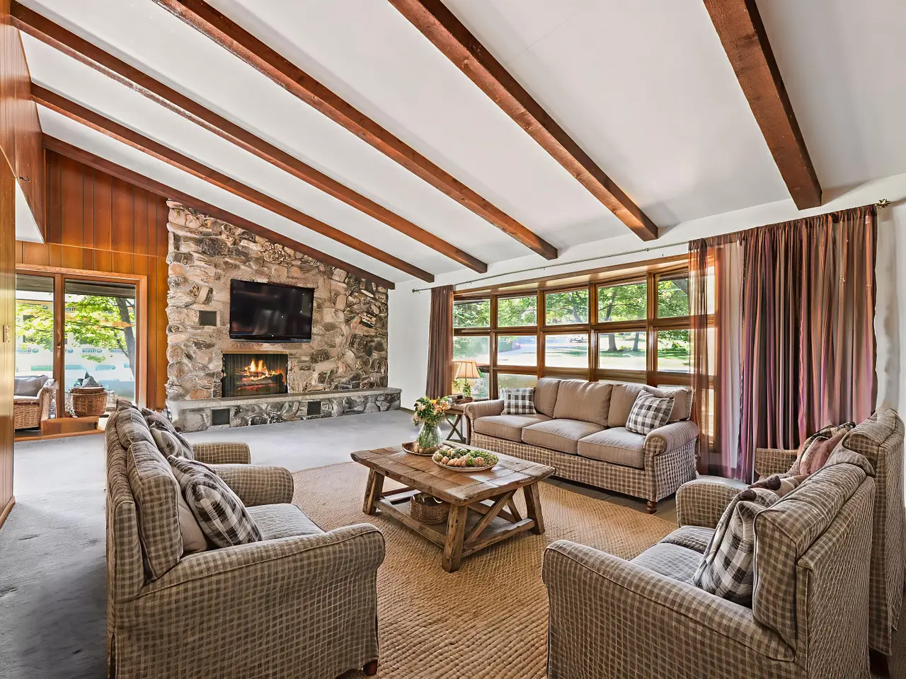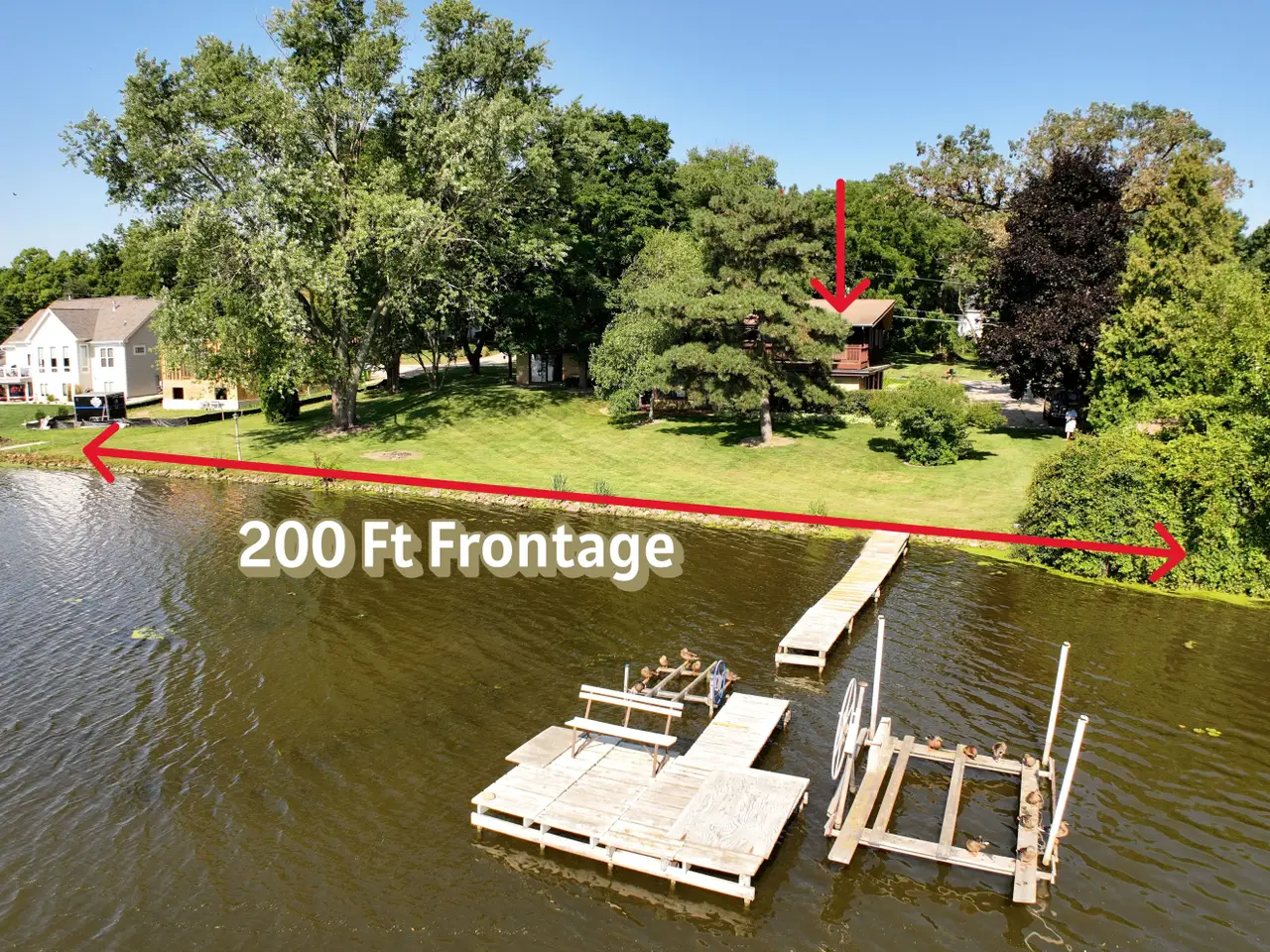 Now Available for the First Time! Discover this spacious five-bedroom home located on four lots along the Fox River, leading directly into Lake Tichigan, featuring over 200 feet of level water frontage. The stunning views are captivating from every direction. Upon entering, you are welcomed by a large tiled, slate foyer that leads to a generous great room, complete with vaulted ceilings and a striking "California Stone" fireplace that reaches the ceiling. The family room includes a cozy fireplace and connects to a three-season room for enjoying the beautiful waterfront. The kitchen, which boasts a brick pizza oven, includes a dining area with river views. The upper-level hosts five bedrooms, highlighted by a sizable primary suite with a connected bathroom, plenty of storage, its own fireplace surrounded by a wall of natural amethyst stone and a marble hearth along with access to a deck overlooking the water. A finished recreation space is perfect for entertaining. Enjoy outdoor living with decks, patios, and a covered patio for rainy days. In addition to the oversized 3-1/2 car garage, there?s a sizable, dedicated workshop area.