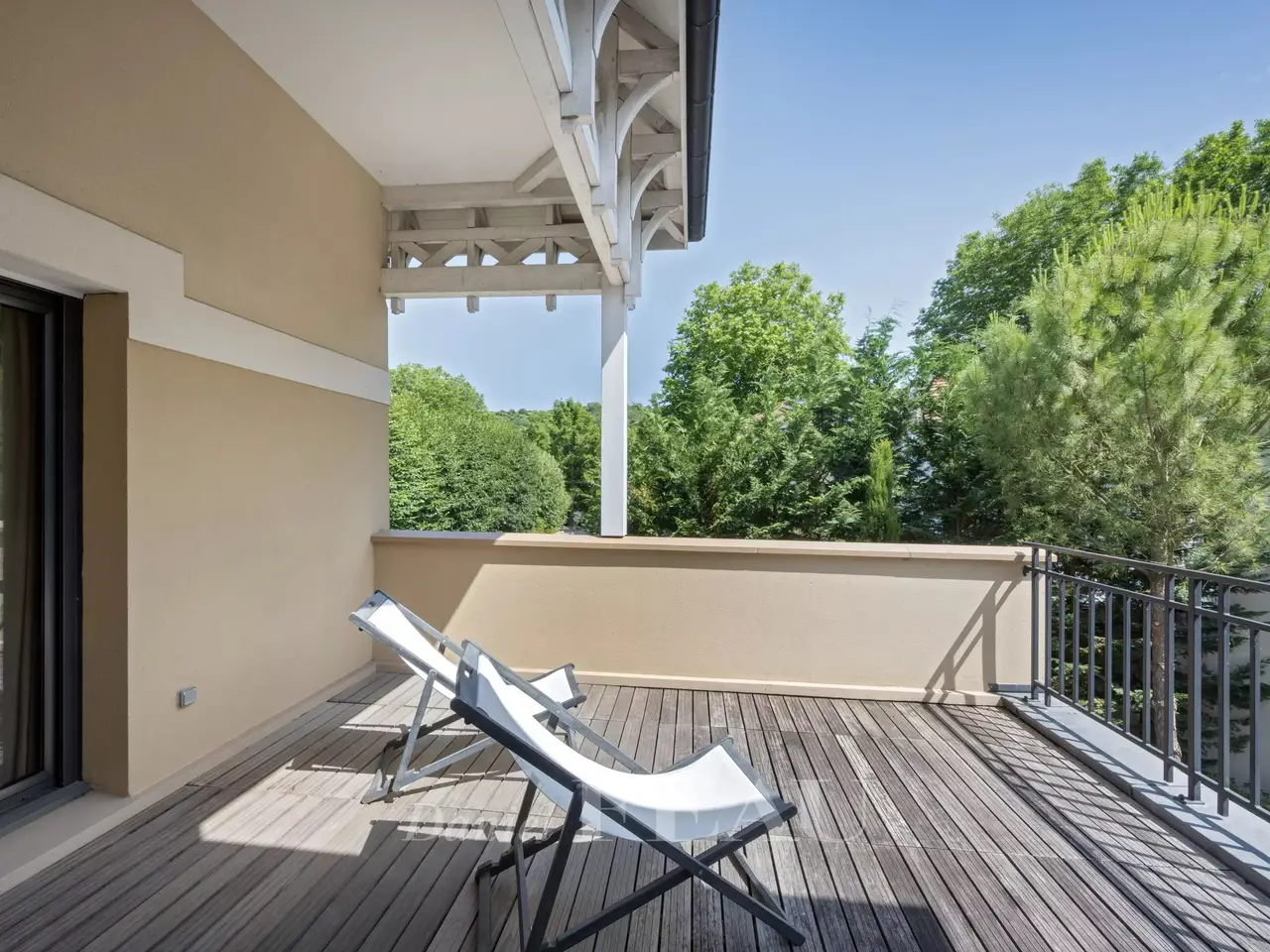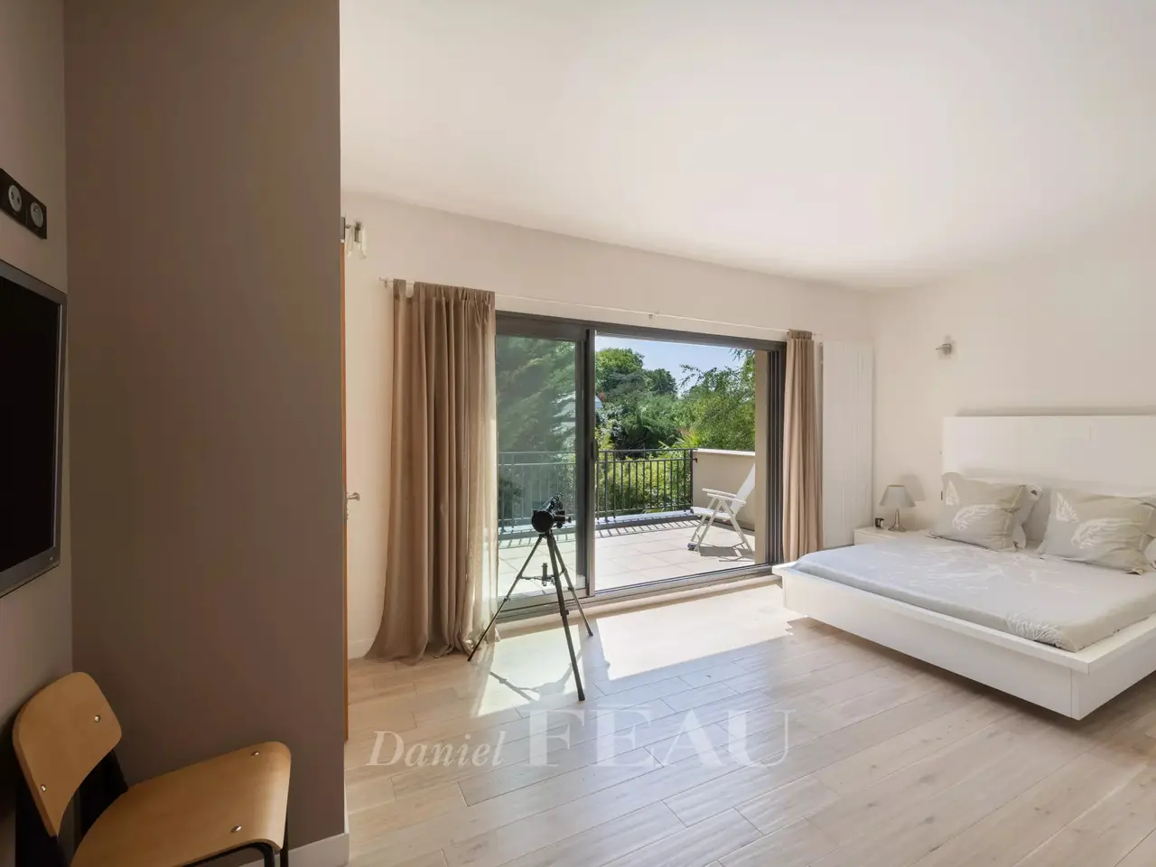 This sumptuous recent villa bathed in sunshine and hidden from view in a luxuriant garden is located in Saint-Maur-des-Fossés’s residential La Varenne Saint Hilaire neighbourhood south-east of the capital. In mint condition, it offers 500 sqm of floor space and 299 sqm of living space including a dual-aspect living/reception room featuring 6.50 metre high ceilings, an extensively glazed dining room, an equipped 25 sqm kitchen (all opening onto a 35 sqm south-west facing terrace), a master suite with a balneotherapy bathroom, a shower room and a dressing room, a guest wc and a storage room. The upper floor enjoys direct views of the Marne River, and comprises four bedrooms (all opening onto private terraces and two with bathrooms), and a bathroom. On a basement with a 200 sqm garage. Conversion would be possible. The plot also includes an 87 sqm three-storey Anglo-Norman style annex. A sqm extension would be possible.