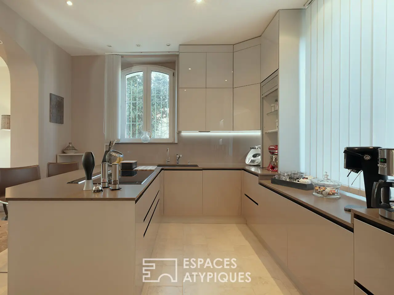 In the heart of Saint-Raphaël, this Belle Époque-style villa, built in 1896 with luxury amenities, offers an exceptional living environment. With a generous surface area of 240 m2, it consists of a main house and an independent apartment on the garden level. Behind its refined facade, the interior volumes are elegantly displayed. High ceilings and omnipresent light give the whole a prestigious atmosphere. The living room, decorated with a modern double-sided fireplace, invites conviviality, while the fully equipped kitchen and adjoining dining room extend the living spaces. Five large bedrooms, two bathrooms with shower and a shower room complete this harmonious ensemble. On the garden level, a beautiful independent apartment of 60 sqm consists of a living room with a fitted American kitchen, a bedroom, a shower room with hammam which provides additional comfort for entertaining friends and family. The garden, a true haven of peace, is designed for absolute relaxation. Sheltered from the hustle and bustle of the city, it houses a jacuzzi as well as a covered summer lounge with barbecue, ideal for sharing moments outdoors. A carport that can accommodate two vehicles makes parking easy. Ideally located in the immediate vicinity of shops, the SNCF train station, schools and beaches, this villa embodies a rare art of living, where the charm of the old is combined with a palace-inspired renovation. Its emblematic architecture and high-end services make it a unique property on the Saint-Raphaël real estate market. ENERGY CLASS: C (155 kWh/m2/year) / CLIMATE CLASS: A (5 kg CO2/m2/year) Estimated average amount of annual energy expenditure for standard use, established from 2021 energy prices: between 2,230 euros and 3,070 euros. REF. 9582 Additional information * 7 rooms * 5 bedrooms * 2 bathrooms * 3 shower rooms * Outdoor space : 342 SQM * Parking : 2 parking spaces * Property tax : 3 359 € Energy Performance Certificate Primary energy consumption c : 155 kWh/m2.an High performance housing