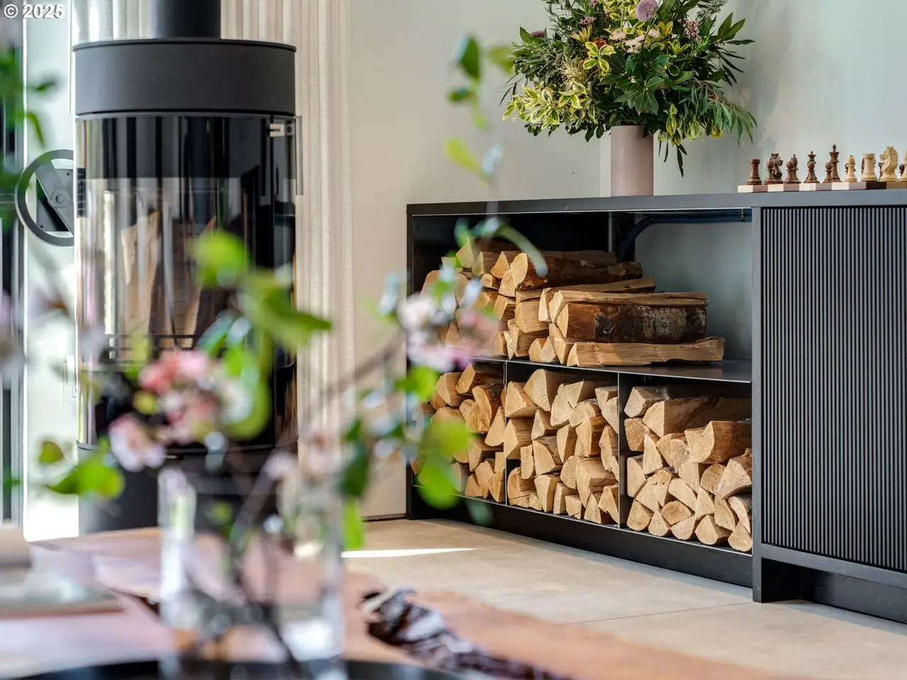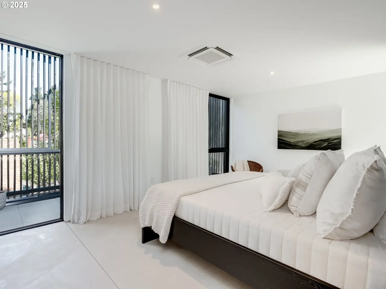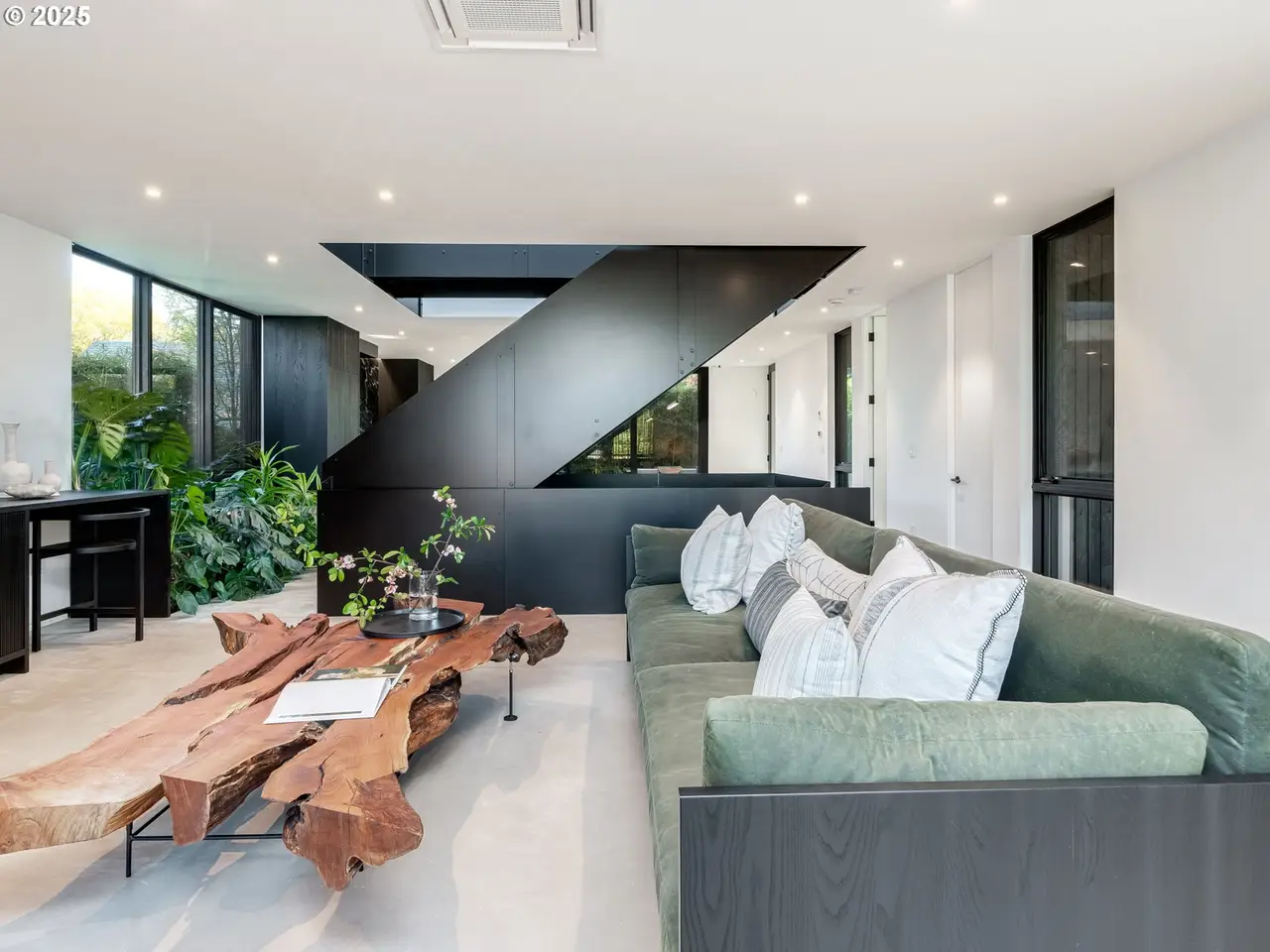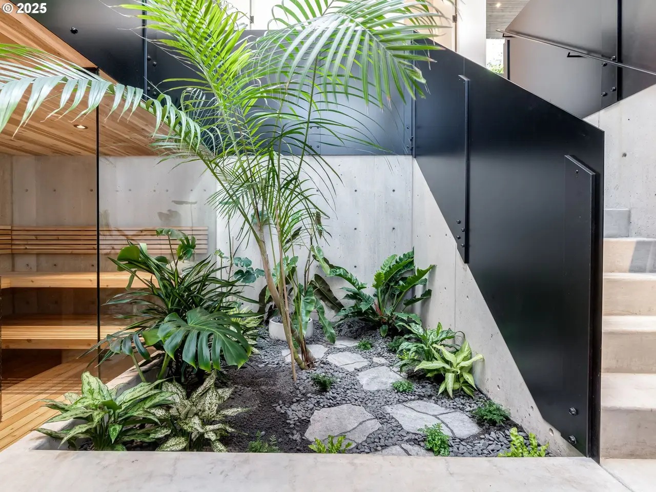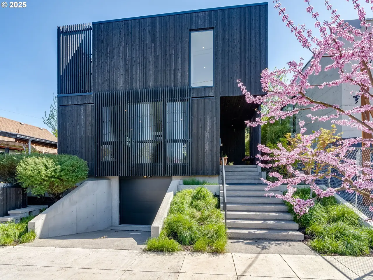 The Atrium House is a rare architectural gem in the heart of the Richmond neighborhood, just blocks off trendy Division Street. This infill project by Capsule Development brings custom-quality design to the Eastside--where creativity, craftsmanship, and nature meet. This modern masterpiece features soaring ceilings, heated concrete floors, and a stunning three-story atrium. Anchoring the living space is a steel staircase, fabricated locally in Portland, spanning all three levels. The lower level boasts a cedar sauna paired with a custom steel cold plunge and shower, creating a private wellness retreat. Lush, curated greenery surrounds the space, enhancing the sense of calm and relaxation. On the main floor, the chef's kitchen is equipped with high-end, built-in appliances from Bertazzoni and Fisher & Paykel. Throughout the home, solid oak custom cabinetry offers enduring beauty and a refined, timeless aesthetic. Luxury materials like Maori Brazilian granite slabs elevate the kitchen and baths. Just off the dining room, sliding doors open to the back patio for seamless entertaining. In the living room, a RAIS rotating wood stove serves as both a cozy heat source and a striking sculptural centerpiece. Upstairs, you'll find all three bedrooms, a dedicated laundry area, and a guest bath. Each bedroom features its own balcony--perfect for enjoying fresh morning air or a relaxing evening breeze. Floor-to-ceiling windows flood the space with natural light, enhancing the open, airy feel throughout. Out front, rolling shutters add a dramatic architectural touch while offering both privacy and adjustable light control. A truly one-of-a-kind property that celebrates thoughtful design and modern living in one of Portland's most sought-after neighborhoods. [Home Energy Score = 8.]