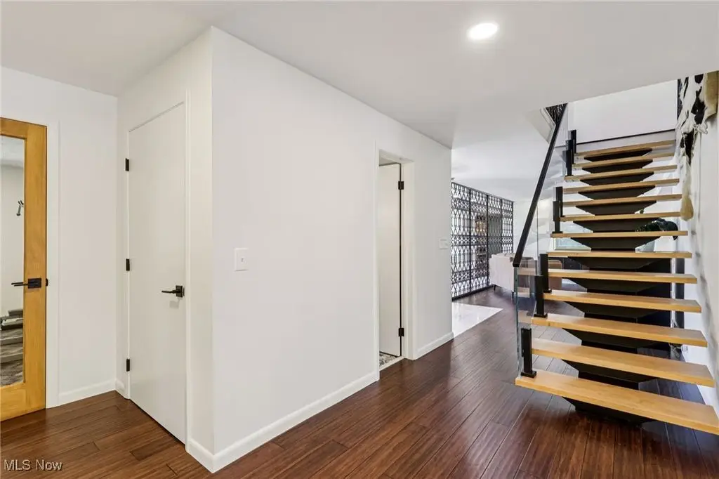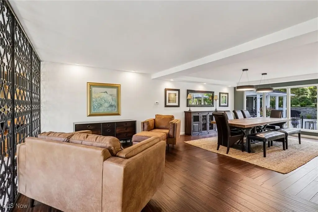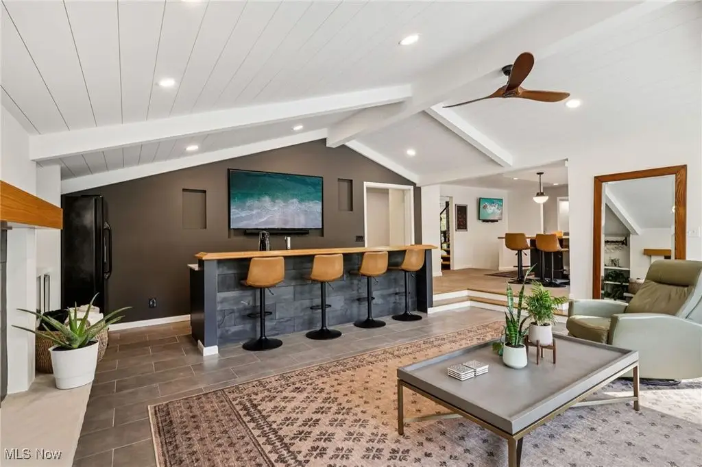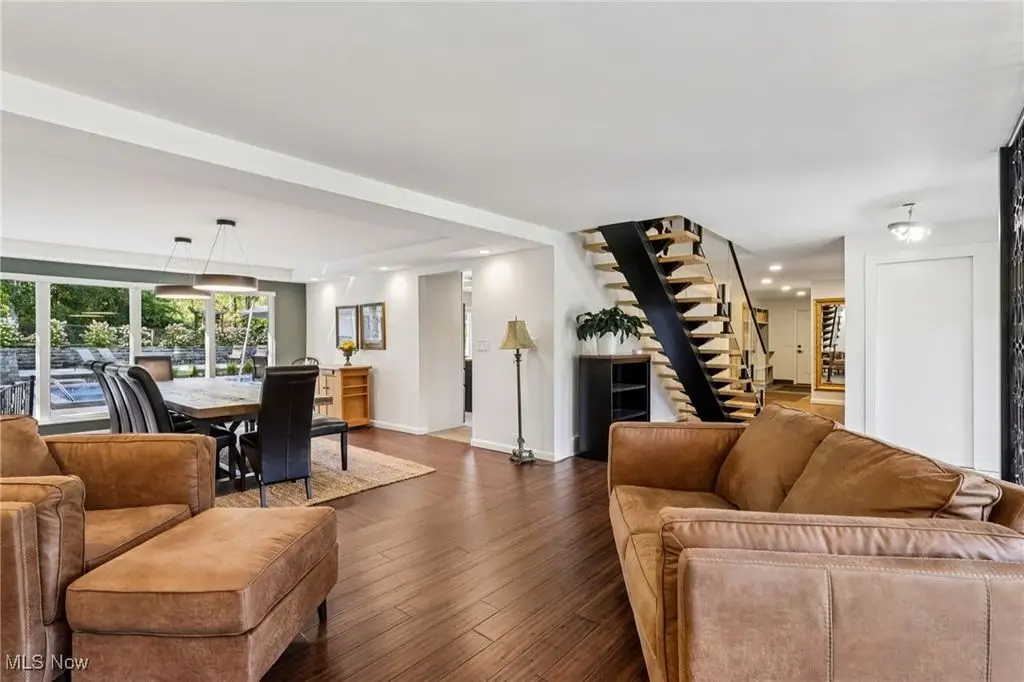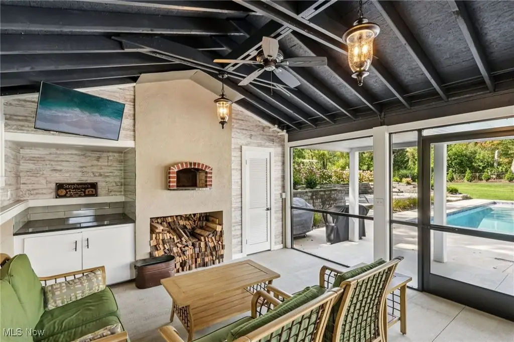 This breathtaking, fully renovated midcentury residence is the epitome of luxury living! Perched on a professionally landscaped 1-acre hilltop lot, this exquisite home features 4 bedrooms, 4 full baths, 1 half bath, a walk-out lower level, sparkling pool, and pool house. Arrive via the circular driveway and step into the dramatic two-story foyer, highlighted by a floating staircase and marble flooring. From there, the open living and dining room impress with picture windows front and back, and a decorative wrought-iron screen. The spectacular gourmet kitchen boasts full-height cabinetry, quartz countertops, tiled backsplash, and stainless-steel appliances. Adjacent is the vaulted, beamed-ceiling family room with wet bar, built-in buffet, and a stunning gas fireplace. A large pantry, an incredible exercise room, a laundry with dog shower, and a mudroom complete this wing of the home. On the opposite side of the foyer, the gorgeous primary suite offers built-in bookshelves, a wet bar, dual closets with a Murphy bed, and a spa-inspired bath with oversized tiled shower, sauna, soaking tub, and double-sink granite vanity. Upstairs, three generously sized bedrooms, two remodeled bathrooms, and a versatile loft provide comfort and flexibility. The walk-out lower level features a spacious recreation room and full bath with direct yard access. Both levels of the home overlook the private backyard oasisC/B?B=complete with pool, pool house, lush gardens, and firepit. Additional highlights include a 4-car attached garage, extra parking, and full connection to public sewer in 2024. Whether hosting elegant dinner parties, enjoying summer poolside, or relaxing with family in inviting living spaces, this remarkable property offers an unparalleled lifestyle.