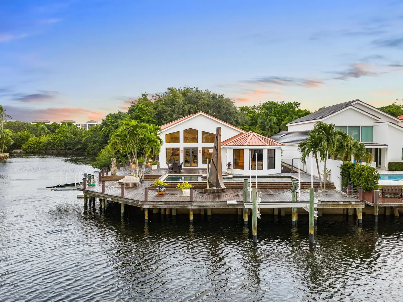 Experience 180-degree Intracoastal views from this 5BR, 6.1BA estate on a premier corner lot in Frenchman's Creek Beach & Country Club. A private Brazilian Ipe dock features a boat lift, jet ski lift & space for up to a 50' vessel. Enjoy resort-style living with a saltwater pool, spa, hot tub, outdoor shower & expansive entertaining areas. Inside, an upstairs loft captures breathtaking water vistas, while a cozy fireplace enhances the refined design. This residence offers the ultimate in private waterfront luxury, full-service beach club amenities, tennis, pickleball and 36 holes of golf.