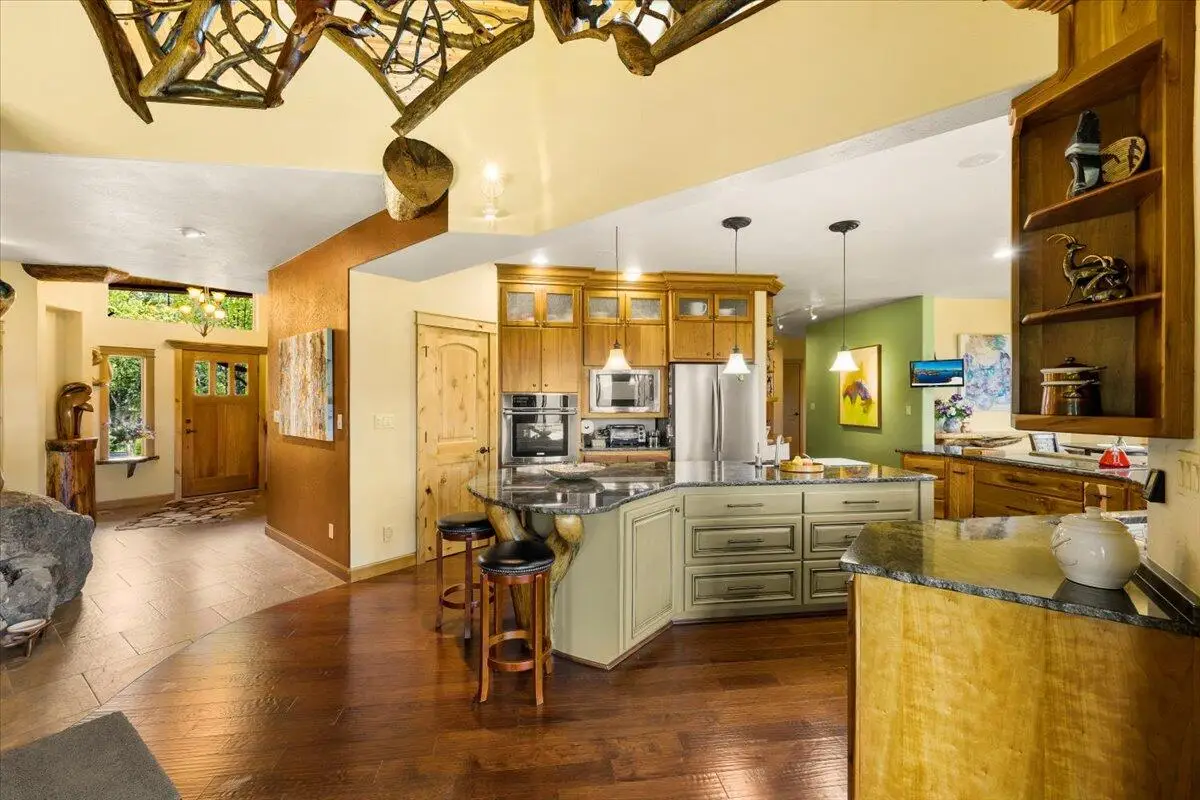 First time ever on the market, a unique opportunity! Started construction in 2008 and was completed in 2012. It took four years complete this meticulously built home which shows in the fine details and amenities. Listed as a two bedroom, the second bedroom is in fact designed as a separate living area complete with its own kitchen, full bathroom, HVAC, living area, and separate entrance. Perfect for a two-family set up, guest suite, or Airbnb. The loft is 864 square feet and has its own full bathroom which could also be used as a third bedroom and or living area. Custom-made wooden hand rails and art made from tree branches throughout the home adds a tasteful and artistic touch that really makes this home stand out. Two wells and a 2,000-gallon holding tank for each well supply this property with ample amounts of water. Water features surround this home for a serene environment. Spectacular mountain views from nearly every room, this home is a must see to appreciate!
