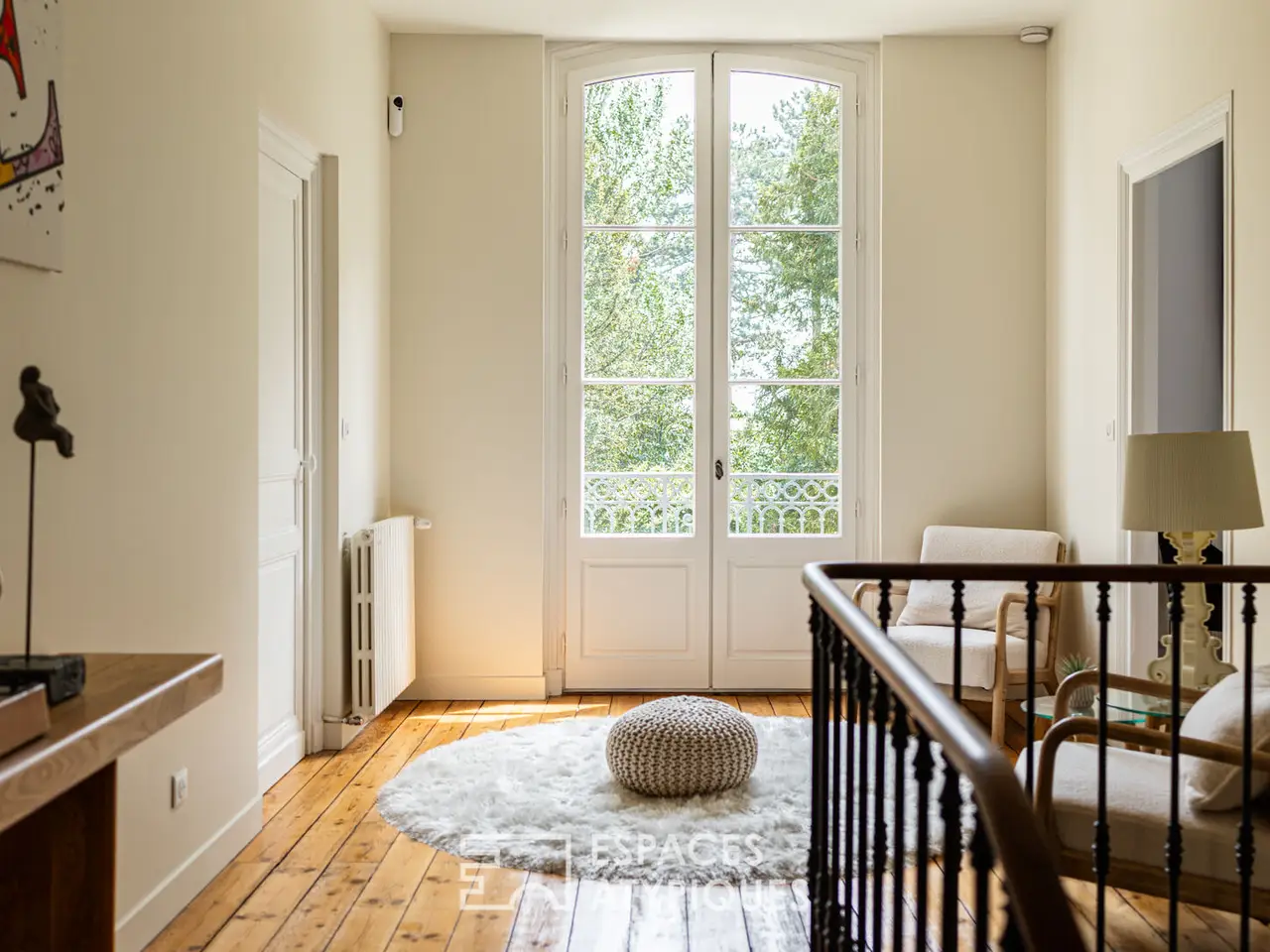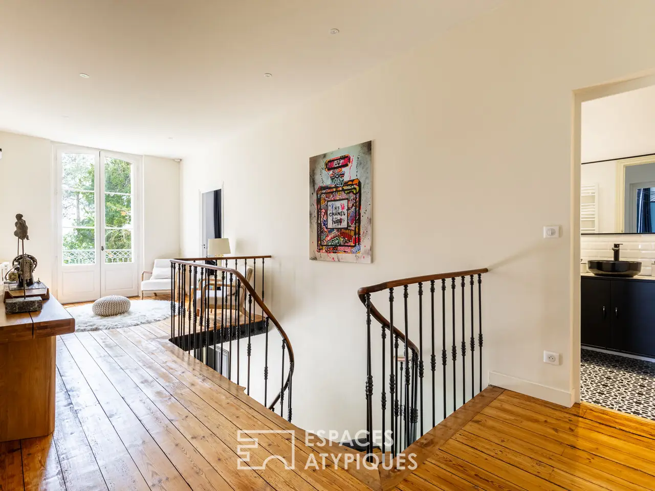 Monumental staircase and boudoir landing