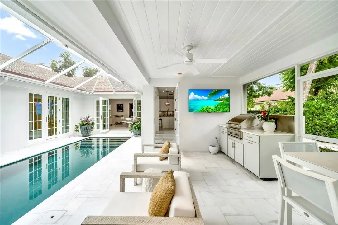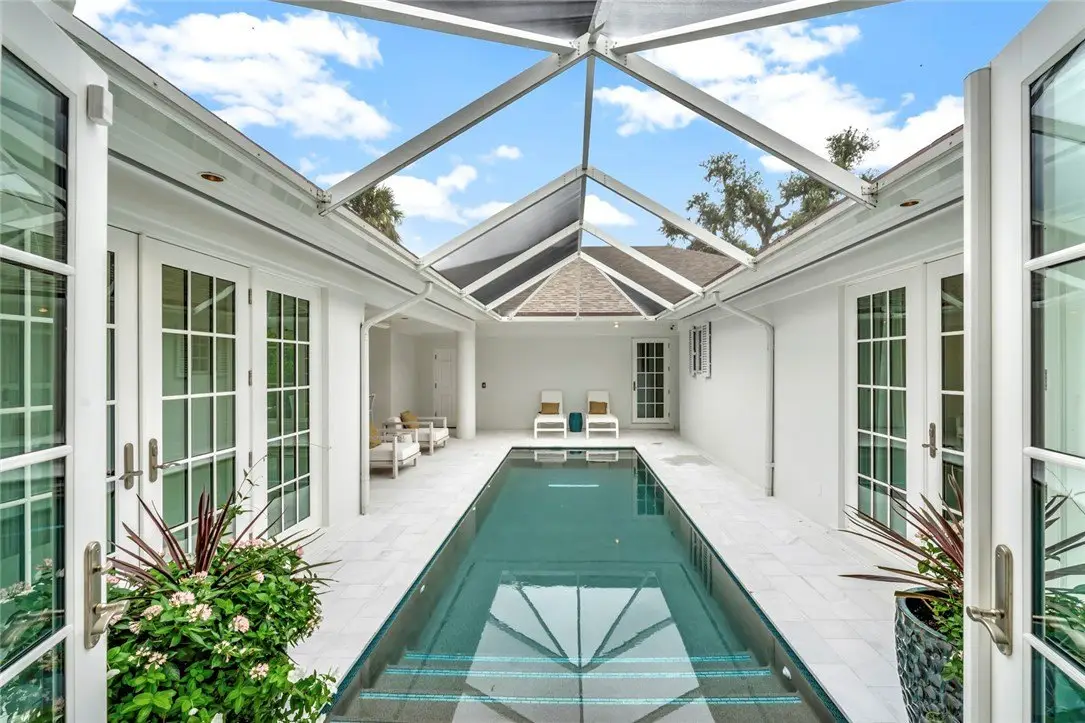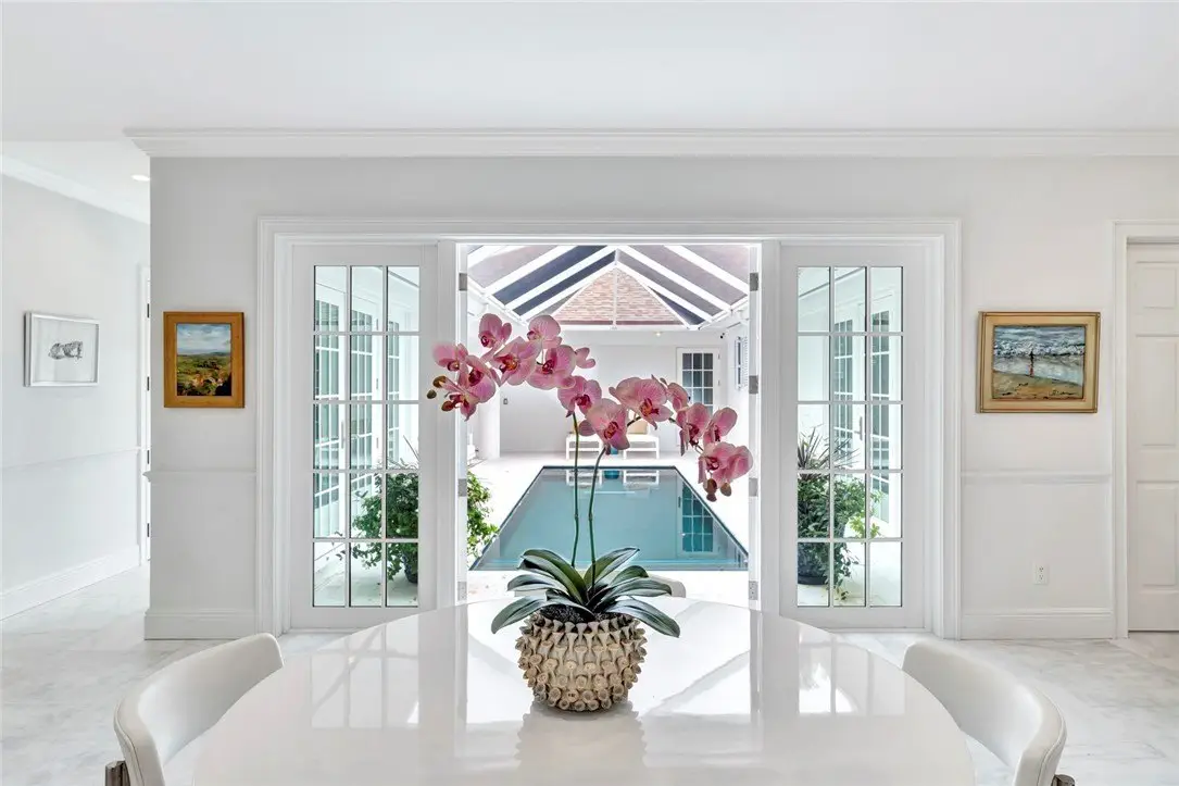 Charleston Square jewel box in the heart of Old Riomar, just steps from Quail Valley River Club & Riomar CC. An expansive Chicago brick front porch welcomes you to this 2BR/3.5BA home centered around a private courtyard atrium pool on a lush 0.37-acre lot. Features Carrera marble floors throughout, open eat-in kitchen/family room, formal living/dining with fireplace, luxe primary suite with dual spa-like baths, guest room with private entry, office/laundry, summer kitchen and rear entry 2-car garage. Offered turnkey with exclusions- newer roof, updated mechanicals and impact glass.