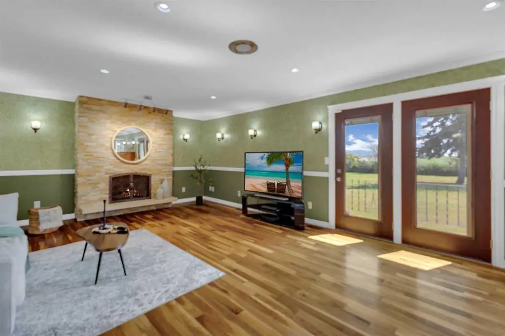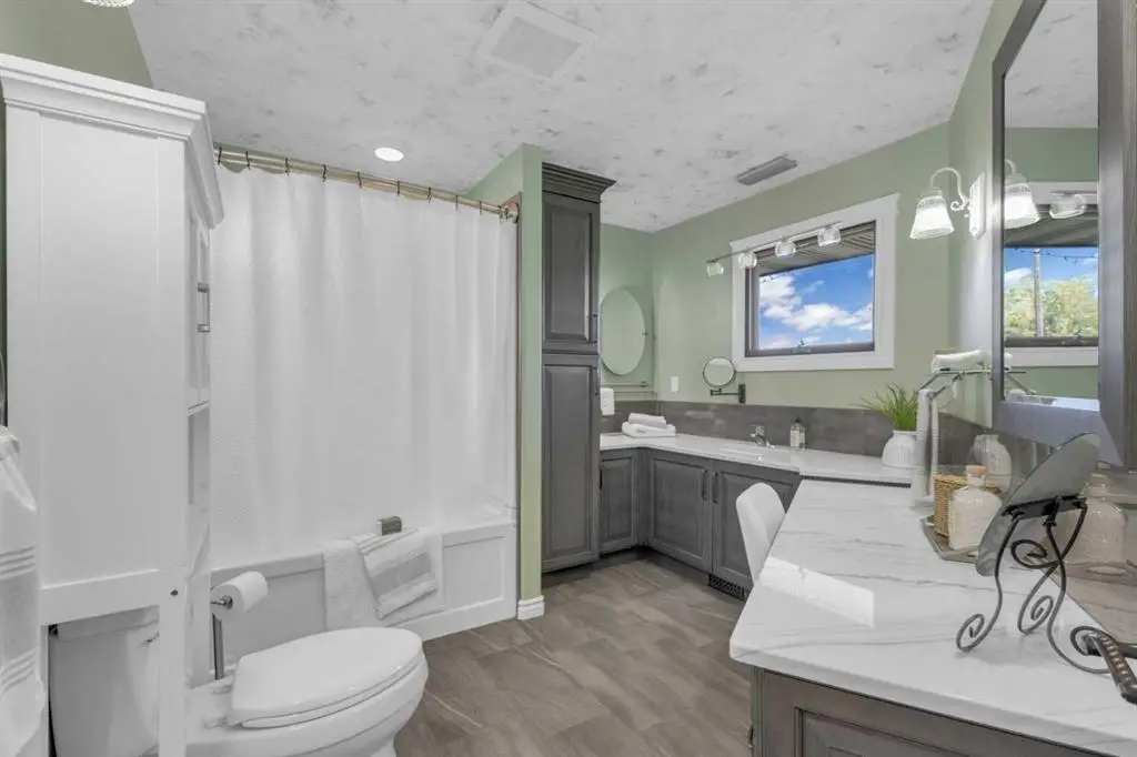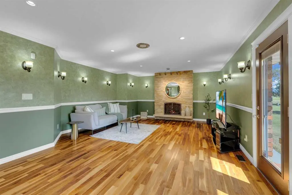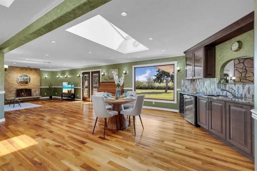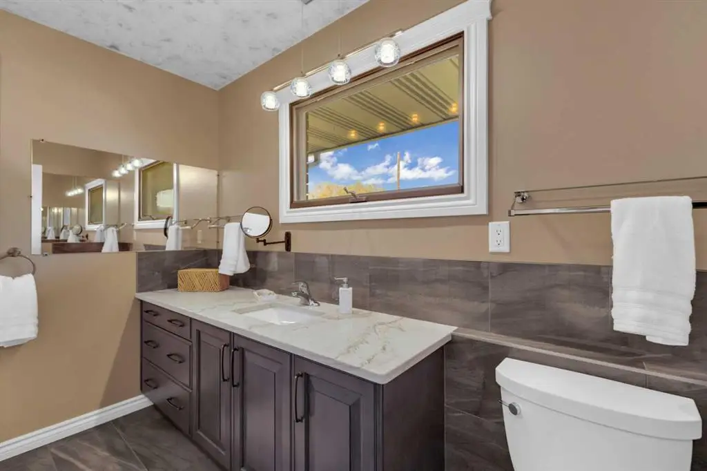 This exceptional property offers 17.92 acres with two residences, a fully finished shop, and multiple outbuildings, located just 1 mile off Hwy 11A on a quiet dead-end road for added privacy, while still providing quick access to both Red Deer and Sylvan Lake. The main home is a spacious bungalow, fully renovated in 2016 with a new roof in 2010. Highlights include hardwood and tile flooring, granite countertops throughout, and an open concept kitchen with a large granite island, black stainless steel appliances, induction cooktop, convection wall oven, warming oven, built in microwave, beautiful cabinetry, and a stunning tile backsplash that flows through the kitchen and dining area. The living room features a wood-burning fireplace, while the sitting room offers a gas fireplace. The primary suite includes a walk-in closet and a luxury ensuite with full bathroom and a deep soaker jet tub in its own private area. Two additional main floor bedrooms, a full bathroom, a half bathroom and the laundry area complete the main level. The basement is nearly finished with a large recreation room, cold room, and utility room with two furnaces, water softener, and A/C. The attached oversized double garage is heated with radiant heat. A second residence, a 2014 manufactured home, offers 3 bedrooms, 2 full bathrooms, air conditioning, washer/dryer, a walk-in pantry, a primary suite with walk-in closet, and a deep corner jetted tub. Outbuildings include a 60’ x 100’ heated shop with radiant heat, three oversized doors (16’ and 14’), bathroom with urinal, washer/dryer hookup, concrete floors in excellent condition, and 220V power in shop (3), quonset (2) and garage (1). Additional buildings include a 70’ x 40’ Quonset with concrete floor, power, and roughed-in underfloor heating, plus five sheds. Both the shop and Quonset feature durable metal roofing. Approximately 16 acres are currently seeded to barley under a gentleman’s agreement until mid-September. This rare offering combines two residences, extensive outbuildings, privacy on a dead-end road, and a prime location close to town — the opportunities here are truly endless.
