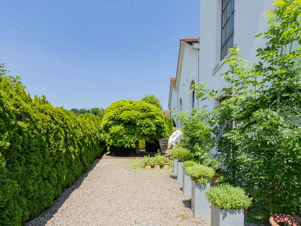 Rising above the meadows and fields of the Ennetsee countryside, this remarkable landmark could almost be mistaken for a church or monastery. In fact, it is a former spinning mill with its own tower, dating back to 1863, when the power of the Lorze River first drove its machinery. In 2000, the building underwent a meticulous transformation into four extraordinary loft residences. Today, the spectacular “SOHO HOUSE” loft occupies the entire west side – including the tower – and offers a private garden with a pergola, jacuzzi, and sauna. Inside, expansive floor-to-ceiling windows and skylights flood the interiors with natural light. The authentic factory character has been preserved through the original structure and exposed walls, while contemporary architectural design elements create a refined contrast, delivering a truly unique living experience. The location balances serenity with convenience: in the village of Hagendorn, a local shop with post office, restaurant, and primary school are just steps away. Nearby Cham, stretching along the shores of Lake Zug, offers diverse shopping and dining options, while the picturesque old town of Zug awaits with its historic boutiques, cafés, and cultural highlights. Zurich, Lucerne, and Zurich Airport are all within easy reach via the A3 motorway. For leisure, Lake Zug invites you to enjoy water sports, while the surrounding countryside offers hiking trails, horse riding, golf courses, and charming farm shops. The nearby Frauental Monastery impresses with its Rococo church and artisanal products. To the south, the Swiss Alps beckon – with the legendary Rigi mountain and family-friendly ski areas just 20 minutes away. The SOHO HOUSE loft combines the industrial heritage of a historic factory with the comfort and sophistication of modern luxury living – a rare opportunity in one of Switzerland’s most desirable regions.