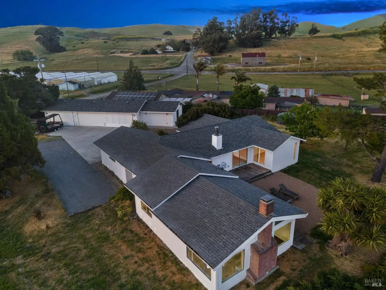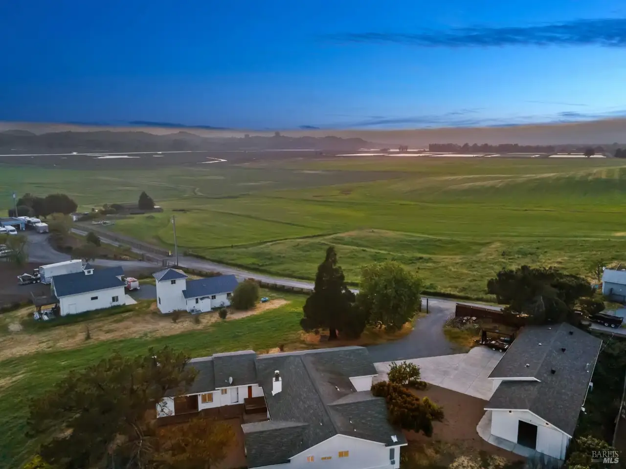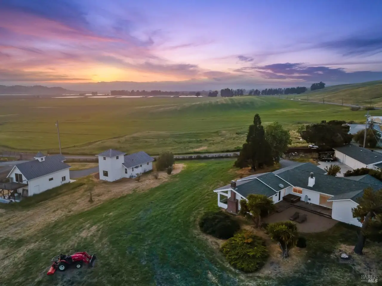 Live the way you want on this tucked-away 2.2-acre estate retreat featuring panoramic views, wide open space, and endless possibilities. Set back from the road for maximum privacy, with access from Nolalia Lane, this rare, multi-home property offers sweeping southern and western views where land, light and livability converge. Gaze out at Mt. Tam and the Petaluma River as the light shifts across the fields. Mature fruit trees dot the exterior; diverse agricultural zoning opens the door to a variety of uses. Neighboring a horse rescue, the setting is ideal for anyone seeking a deeper connection to nature. Main 3-bed, 2-bath residence has been thoughtfully updated with fresh paint, refreshed kitchen; converted garage offers extra living and workspace. Recently built 2-bed, 1-bath farmhouse-style secondary home features nearly 1,000 sq ft of modern simplicity and natural light, perfect for guests, multi-gen households, rental income. Iconic separate studio, modeled after an Icelandic schoolhouse, offers full bath, kitchenette and garage/storage space. Detached 6-bay garage provides space for hobbies, storage, projects. Each structure is positioned to maximize landscape views. Minutes to the city, yet a world away, this is a rare mix of privacy, functionality and natural beauty.