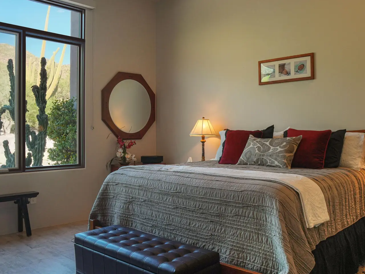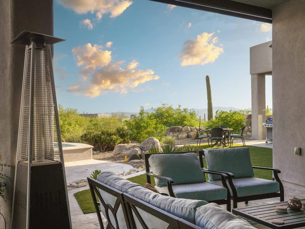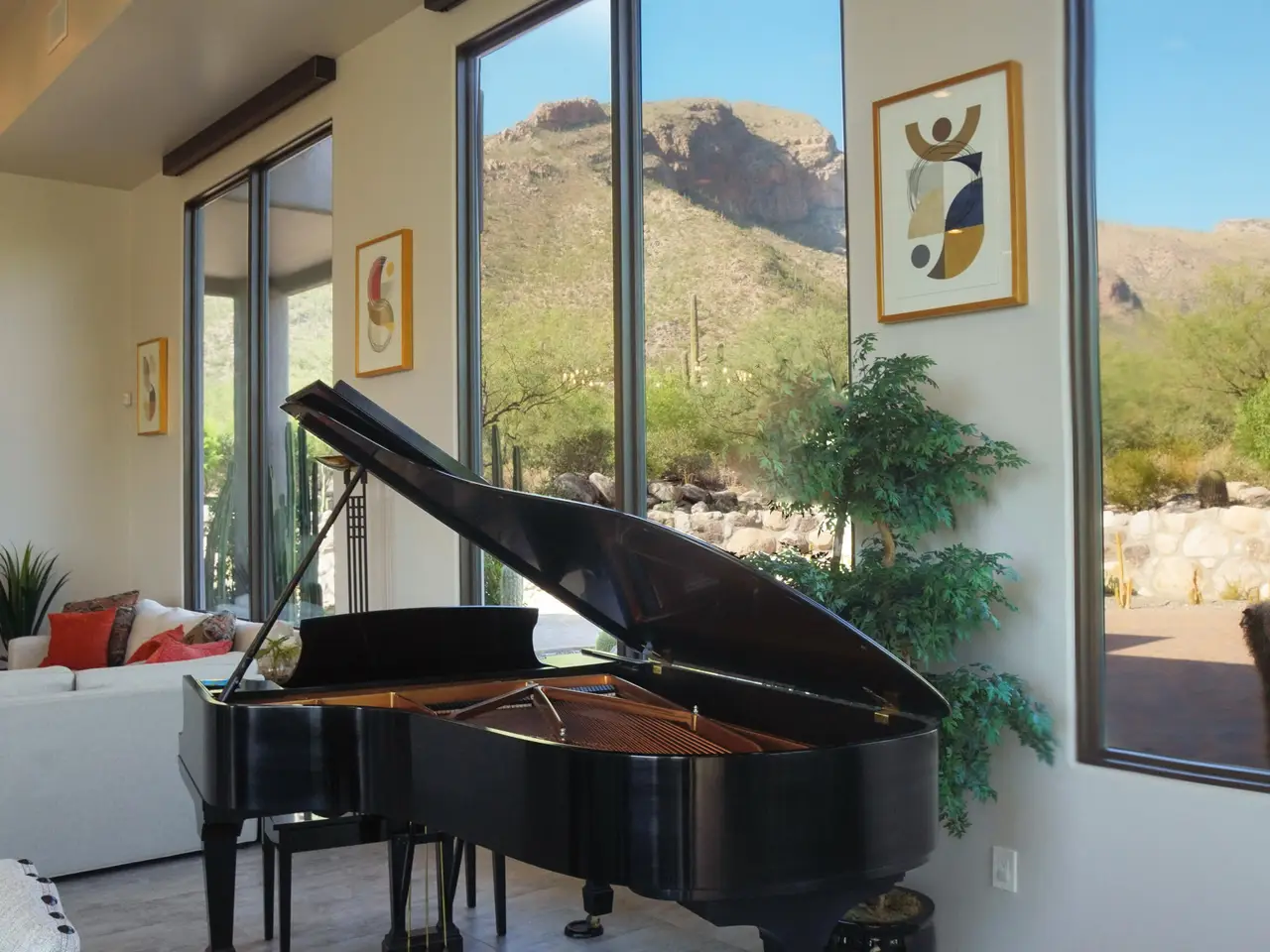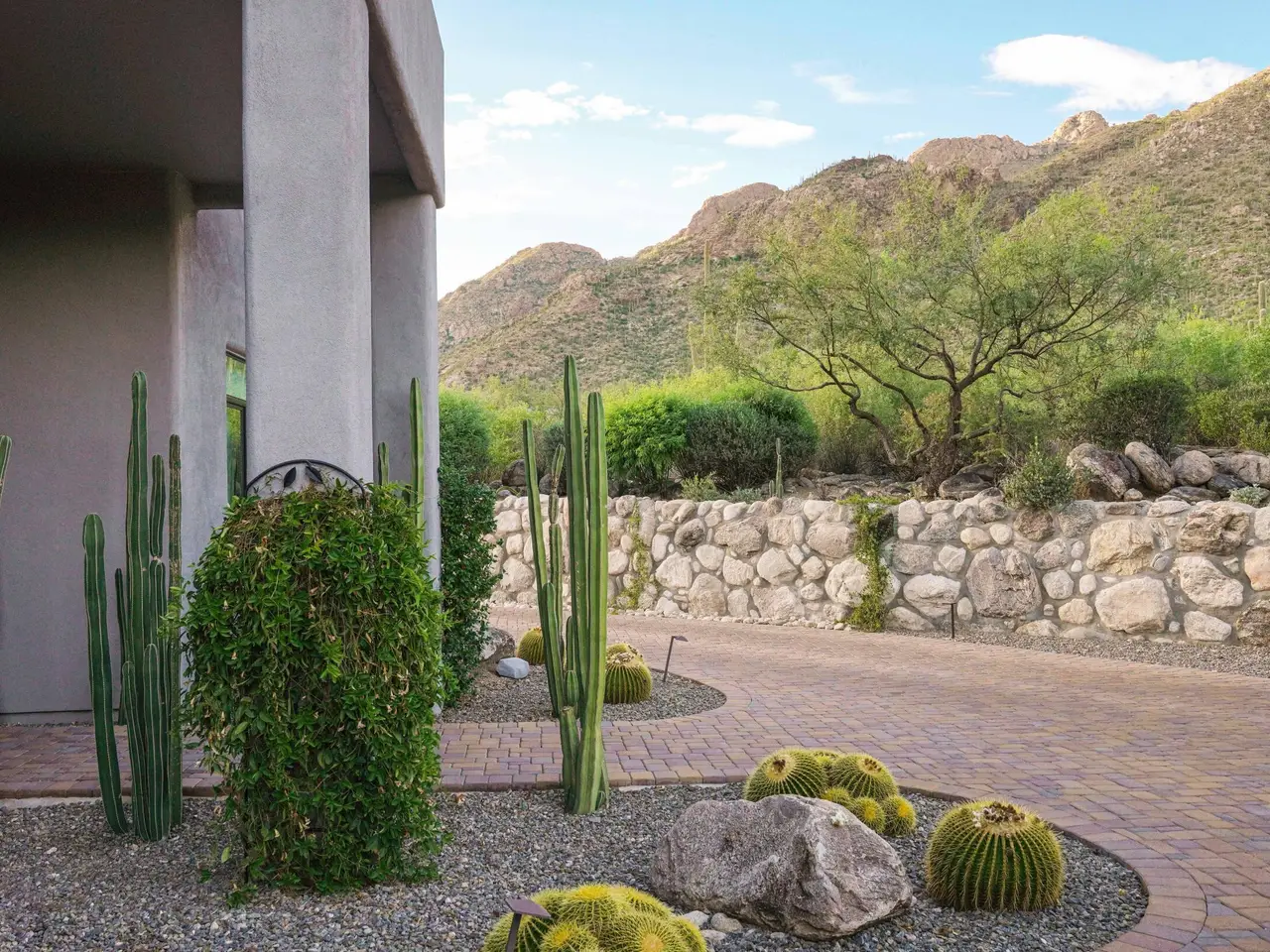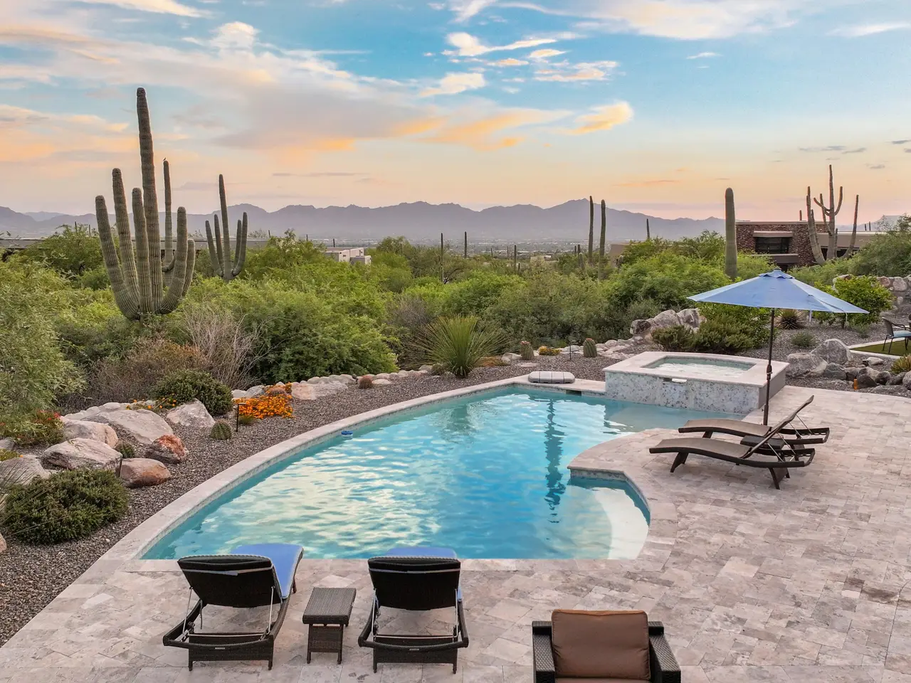 Modern Elegance Meets Desert Serenity in Prestigious Pima Canyon! Nestled on 1.2 private acres, this 5,805-sqft custom residence masterfully blends sleek modern architecture with timeless desert sophistication. Designed by renowned architect Kevin Howard, the home showcases impeccable craftsmanship, breathtaking views, and an effortless indoor-outdoor lifestyle. From the moment you step through the custom Victory Metal Works iron and glass entry door, you're greeted with soaring style and substance--five spacious ensuite bedrooms, energy-efficient design, a 2021-owned solar photovoltaic system, and three high-efficiency Trane HVAC systems (14-16+ SEER). The resort-style backyard is an entertainer's dream, featuring a sparkling pool and spa, travertine