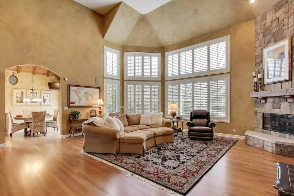 • Floor to ceiling stone fireplace