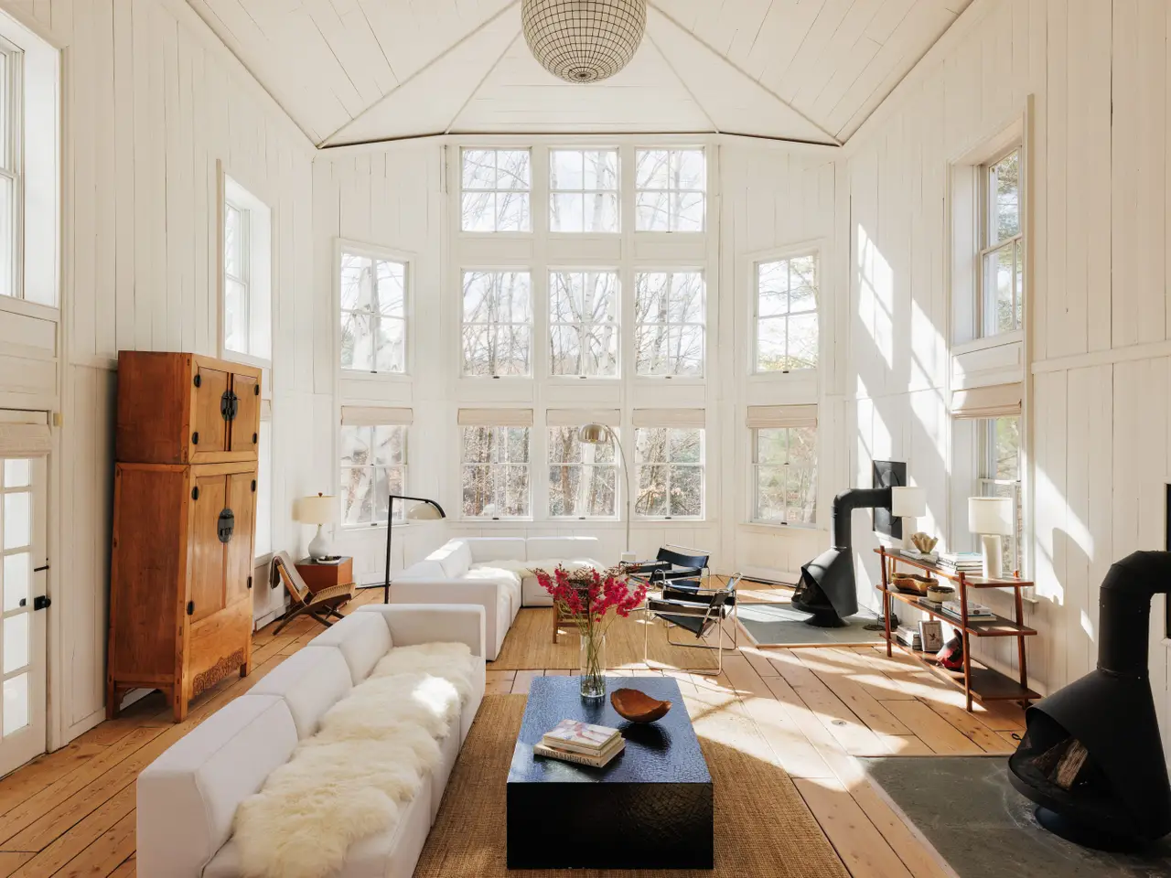 Twin wood-burning fireplaces