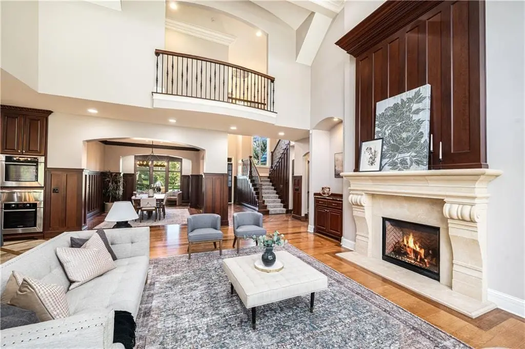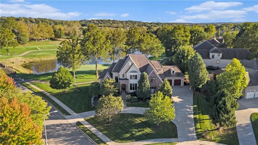 $100,000 price reduction!!!! Stunning Custom 1.5-Story Estate at The National Nearly 7,000 sq ft of Luxe Living! This extraordinary home features a 4-car garage and breathtaking floor-to-ceiling windows that showcase the best views of the golf course and water. As you step through the soaring entry, you'll be greeted by an open floor plan, designer chandeliers, exquisitely detailed trim, beautiful hardwoods, and crown molding. The gourmet kitchen is a chefs dream, featuring exotic granite counters, soft-close cabinets and drawers, two new Bosch dishwashers, a Therador 6-burner gas range with griddle, Viking hood, Bosch double oven and warming drawer, a new refrigerator, beverage refrigerator, and a walk-in pantry. Slide open the glass doors to your outdoor oasis a covered porch with a gas fireplace, expansive patio, and space to grill and relax. The main floor primary suite is a true retreat, complete with its own fireplace, frame TV, heated tile floors, a jetted tub, walk-in shower with glass surround, and walk-in closet. On the mail level there is also a study with a full bath, along with laundry area. Upstairs, you'll find three large bedrooms with walk-in closets, a bonus/gaming room, and second laundry. Walkout lower level is an entertainers paradise an open recreation space, wet bar/second kitchen, wine cellar, fifth bedroom suite, second office or workout room with breathtaking green views, and unfinished storage space. Additional storage, or golf cart garage beneath the covered patio. A new 5-foot black aluminum fence with two gates provides privacy and security. All of this is nestled in the heart of KCs premier country club, The National, featuring an exclusive 18-hole golf course, driving range, clubhouse, swimming pool, gym, tennis and pickleball courts, and a vibrant social scene. Plus, enjoy access to the second 18-hole course. Live the luxury lifestyle you deserve this exceptional estate and community await!