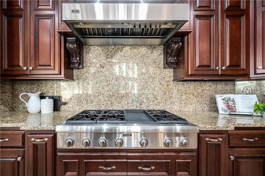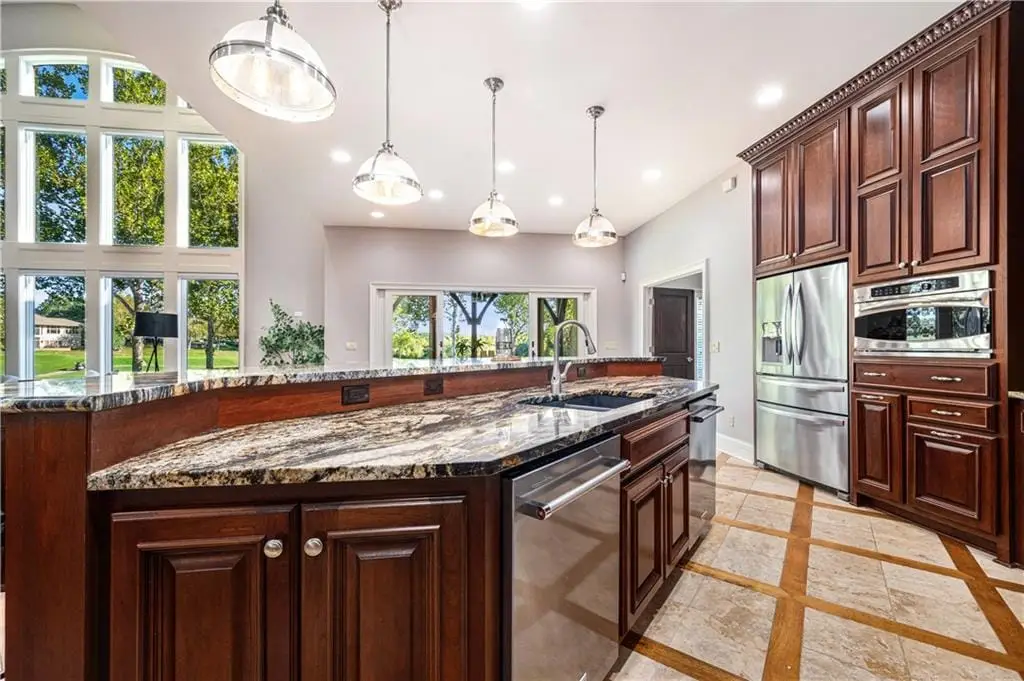Gourmet kitchen with exotic granite counters and high-end appliances