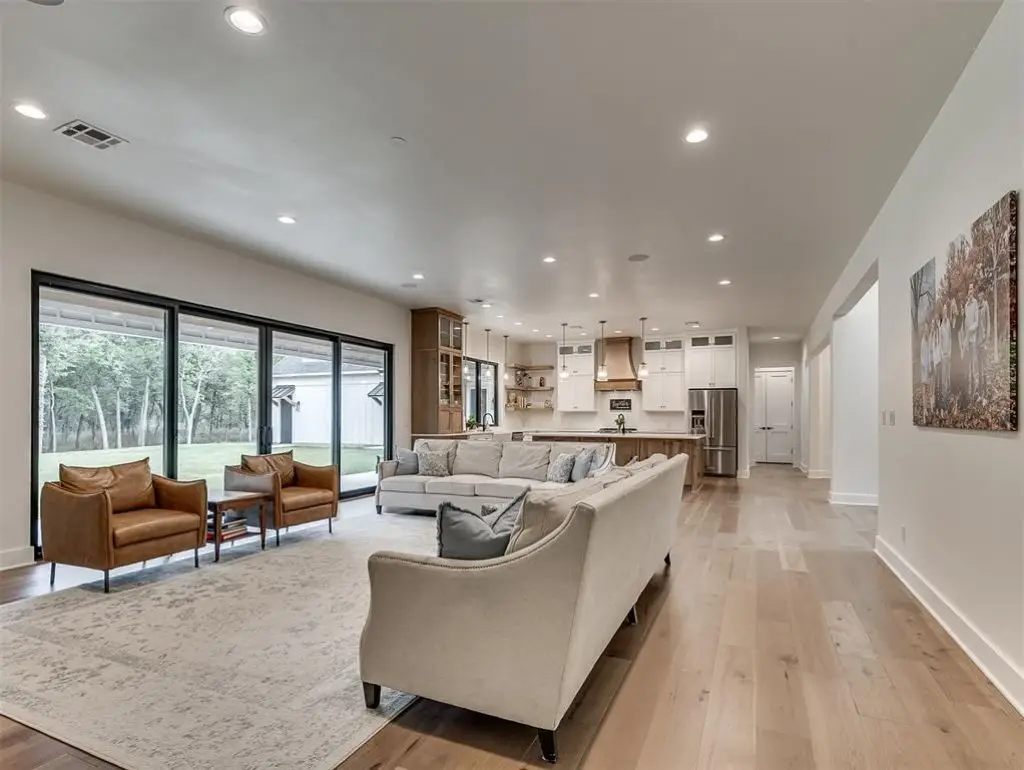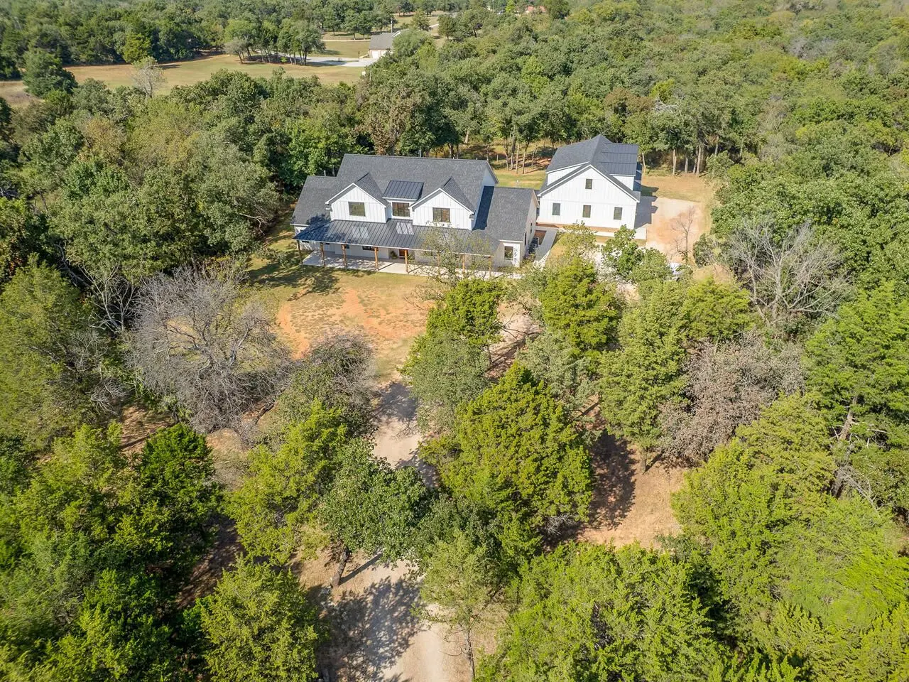If this isnt a dream come true modern Farmhouse I dont know what is! This custom-built home sits majestically on a beautiful 4.35 acre wooded lot. After you've caught your breath as you travel down the winding drive you'll quickly realize how lovely and usable are the generously sized wrap around porches front and back. There's over 1,500 sqft of porches. That's just the beginning! There is so much architectural interest within the property; a 20' entry ceiling, Pella windows, and most significantly pastoral peaceful views of the property from every vantage point. This home has six bedrooms, the primary bedroom and bath which is spectacular is on one end. And three other bedrooms and bathrooms on the main floor at the other end all with 10' ceilings. Upstairs is a big living area (playroom, second office or media room) as well as the other roomy bedrooms, two bathrooms and big gorgeous windows to look out of and dream. Every home has a heart and this one is the large living area combined with an expansive open kitchen. If you enjoy entertaining and love cooking this ones for you! Every detail was thought through carefully when designing this kitchen. Lovely cabinets and lots of storage and a big farm sink overlooking the backyard. The quartz island is approximately 5'x10' with a salad sink and there is room for lots of stools and storage around the island, Kitchen Aide appliances, engineered wood flooring throughout the living areas. On top of the highly functional and beautiful kitchen there is a walk-in pantry room and over 10' of quartz countertop space many drawers and cabinets with adjustable shelves room for a refrigerator and freezer plus a mudroom area for coats/shoes. Directly across from this room is the laundry room with a deep sink storage and it has an 8' quartz countertop space. These rooms are work horses! Navien tankless hot water, water filtration system, water softener, 4 car garage & more!Well waterSeptic system: Installed and serviced by Red Dirt Septic2 Navien Tankless hot water heaters3 Heat & AC zoned unitsPella windows (casement)Each room wired with Cat6 cablingFiber Internet installedWater sprinkler system ready with well waterWater softener systemTriple filtered water treatment system1,500 sq ft loft unfinished loft space above garage with plumbing and electrical planned for future expansionLarge shop space located in 4 car garageBathroom with outside entrance located in garageFront and rear porches prewired for ceiling fansEngineered hardwood floors downstairs5.1 channel surround sound ceiling speakers in downstairs living area