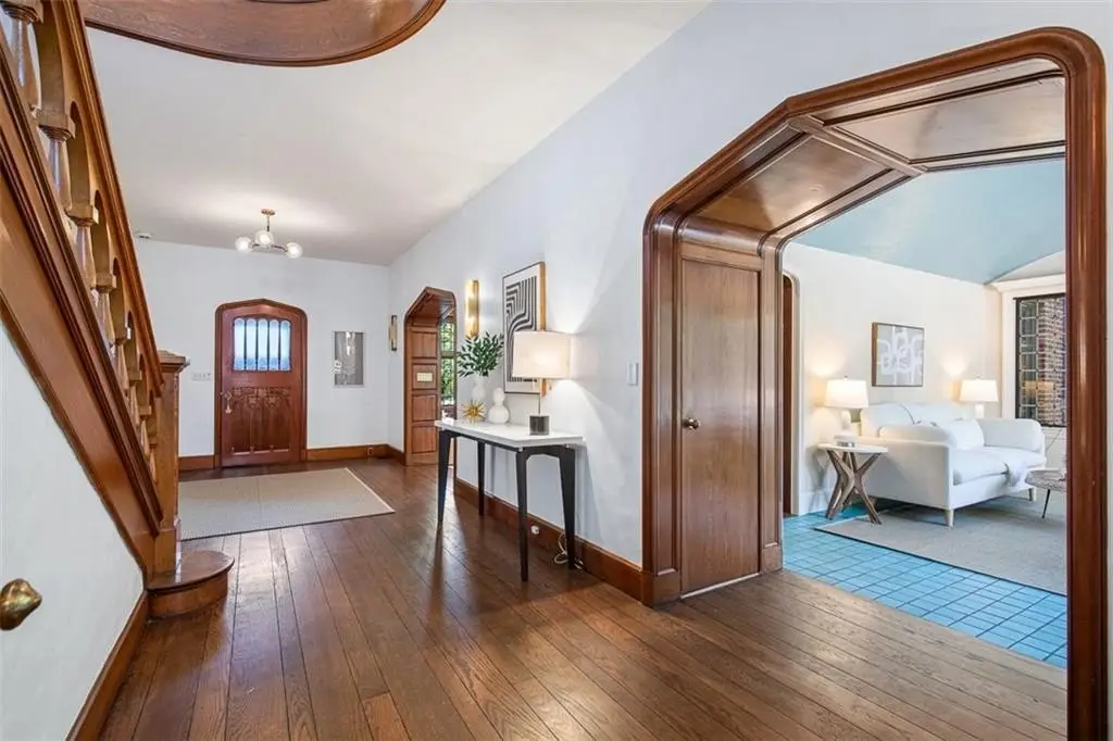 Constructed in 1928 by Architect Marshall B Martin, this handsome brick home is widely believed to be the best example of the Tudor Revival style in Providence. With its commanding presence, this L shaped manor is sure to impress and features extensive exterior detailing including prominent chimneys and herringbone brick detail. Step inside to find a grand foyer with stunning wood work and high ceilings. The formal living room – one of the most beautiful rooms in the city – features original wood paneling, a stone fireplace and stunning leaded windows. The sunroom looks out over the private back yard and features a barrel ceiling and plenty of natural light. The formal dining room has been opened up into the kitchen, creating terrific flow and easy conversation between rooms. The oversized gourmet kitchen, with a large center island and custom millwork, features a breakfast nook and desk area. The dramatic, vaulted second floor family room provides a comfortable escape for the whole family. The primary bedroom encompasses a dressing room with incredible woodwork, a marble bathroom, and a large bedroom with bay window. Two other spacious guest bedrooms, and a full bath, occupy this floor. The third level features a massive skylight, four additional bedrooms, and two full baths. Add a three-car attached garage, a whimsical potting shed, and state of the art systems. This home seamlessly blends the grandeur of a time-past with modern conveniences essential for today’s lifestyle.