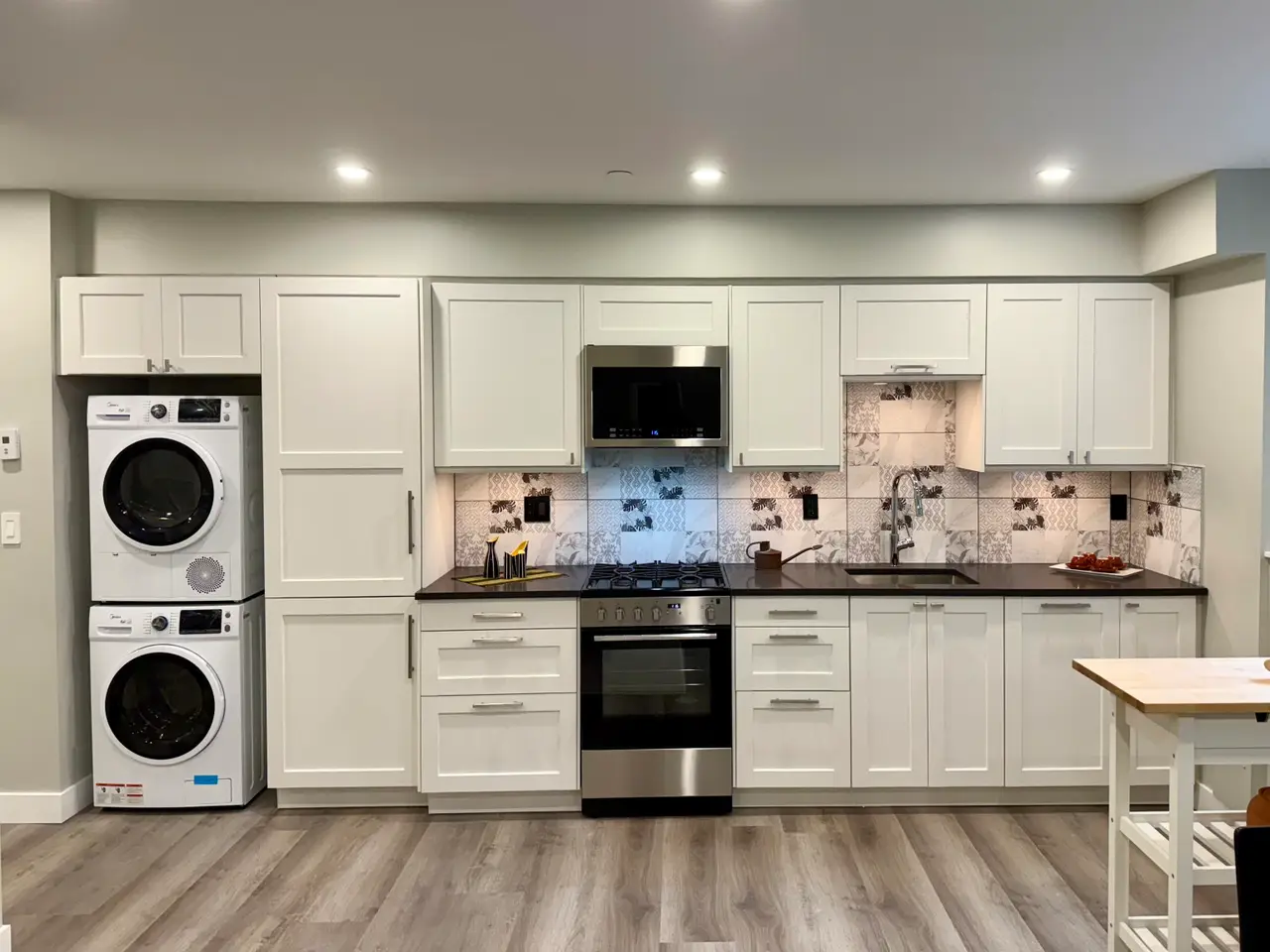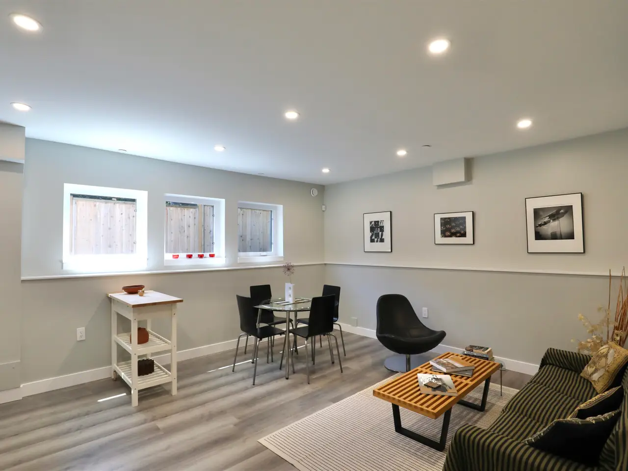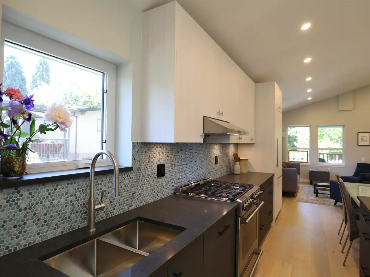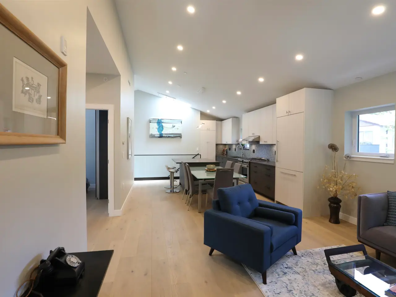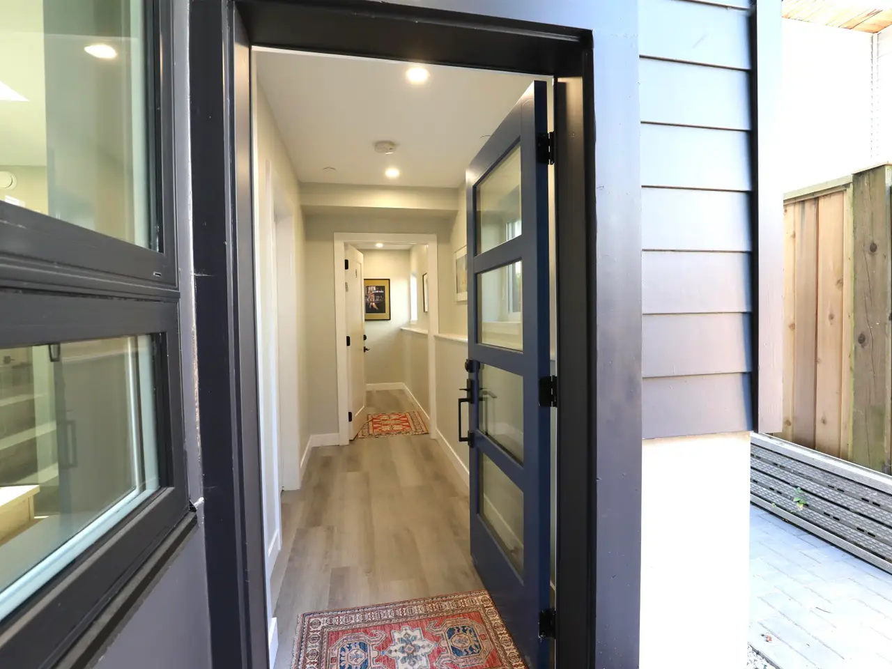 Stunning new, family-friendly ½ duplex in desirable Cedar Cottage. This 2,048 SF home features 5 spacious bedrooms plus 4 full baths, including ground-level legal suite with separate entrance - ideal as a mtg helper, space for extended family or caretaker. The main level is filled with natural light, through an abundance of windows & skylights, accentuating the soaring 12’ vaulted ceilings & an open-concept layout with a chef-inspired kitchen, gas range, counter-depth fridge, custom cabinetry & granite counters. Enjoy energy-efficient, 5-zone radiant in-floor heating, A/C and a sunny west-facing patio & fenced yard - perfect for outdoor entertaining. Includes an attached garage & ample storage. Steps to transit, parks, Trout Lake CC & schools: