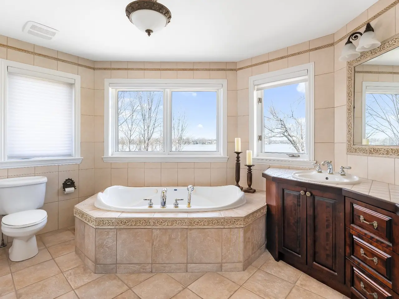 Pristine waterfront property exquisitely crafted and built. Sitting on over 17,000 sqft. of land with over 80 ft. of direct navigable access to Riviere des Prairies. A watersport enthusiast paradise! Spacious 5 bed, 3.5 bath residence, boasting a generous crosshall floorplan accented by a sweeping circular staircase. Incredible primary bedroom designed as a spa-like retreat, with opulent ensuite, walk-in closet, gas fireplace and views overlooking the sprawling backyard and stunning water vistas. An opportunity not to be missed in a highly sought after corner of the West Island. See addendum for more info.