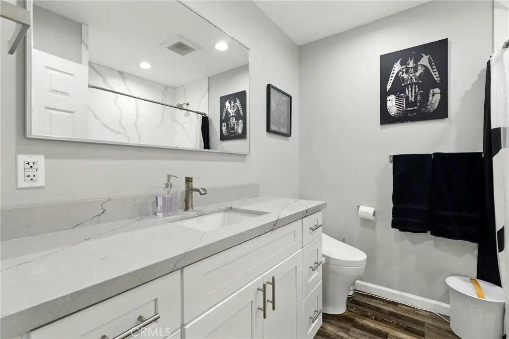 Welcome to this picture-perfect, fully remodeled single-family home nestled in a desirable Fullerton neighborhood. From the moment you arrive, you'll be charmed by the inviting curb appeal, featuring new exterior paint. Step inside and be wowed by the seamless flow of new luxury vinyl plank (LVP) flooring throughout the open-concept living space. The beautifully updated kitchen boasts modern amenities, including stainless steel appliances, quartz countertops, and a striking backsplash. The large Living Room boasts lots of windows allowing in an abundance of natural light and a brick fireplace, The family room is off the back of the house and has backyard access to your private patio area. It is currently being used as a fourth bedroom. Both bathrooms have been thoughtfully upgraded with contemporary finishes that match the home's cohesive design. Additional highlights include an indoor laundry room with cabinet space, two wood-burning fireplaces, built-in closet organizers in every bedroom, a new electrical panel, ceiling fans, new doors, and fresh interior paint throughout. This home is move-in ready and waiting for you! At this price it won't last long in the current market place.