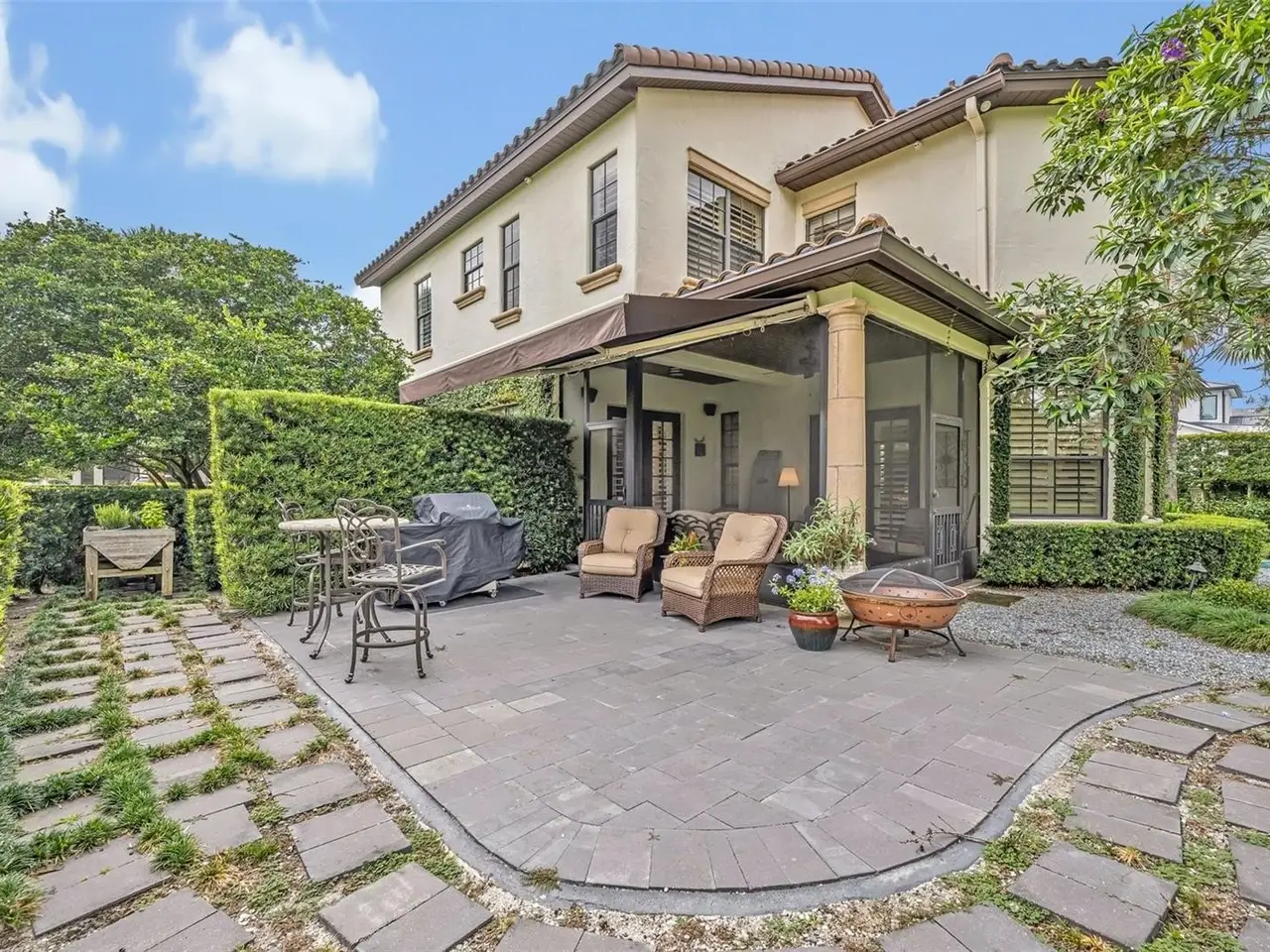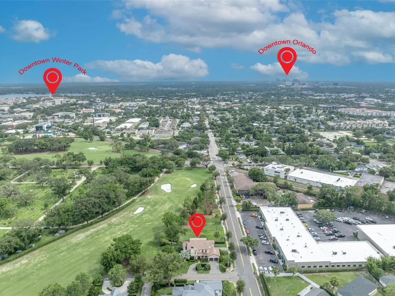 Experience timeless elegance and modern sophistication in this stunning 3 bedroom, 4 bath Mediterranean home, ideally situated on the 4th hole of the beautifully maintained Winter Park 9-hole golf course. Nestled on a 75 x 100 lot, this 3,440 sq ft residence was extensively renovated in 2017. From the moment you enter the welcoming foyer you'll notice the refined finishes and intentional design. A custom office just off the entry features built-in cabinetry, drawers, and integrated workspace solutions, including a printer and shredder, ideal for remote work or quiet study. The formal living room, anchored by a gas fireplace and flanked with custom shelving, opens up vi French doors to a side patio with sweeping views of the golf course. Entertain with ease in the gourmet kitchen, outfitted with Thermador appliances, a generous center island with cooktop, abundant cabinetry and a charming wet bar nook with wine refrigerator. The formal dining room also opens to the outdoors, with French doors leading to a screened-in patio perfect for enjoying cooler evenings. Upstairs, the serene primary suite features a private balcony overlooking the golf course, built-in closets and a spa-style bathroom with dual vanities, soaking tub, large shower and walk-in closet. A secondary bedroom offers its own en-suite bath with tub/shower combo. An attached in-law suite provides flexible living with a private entrance, family room, kitchenette, full bath and bedroom-ideal for guests, multi-generation living ore rental potential. Additional features include 10 ft ceilings, 2 car garage, 3 AC units, 2 hot water heaters ample storage space and security system. Just a short stroll or bike ride to the vibrant shops and dining of downtown Winter Park. This home offers tranquility and convenience. A rare gem in an unbeatable location!