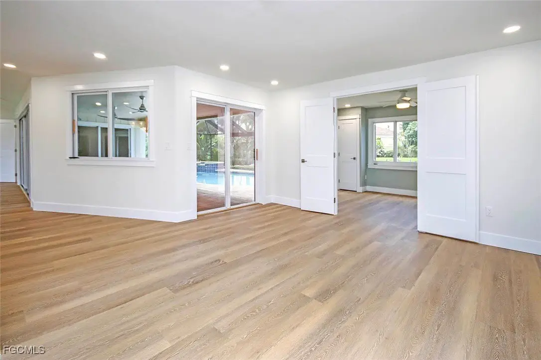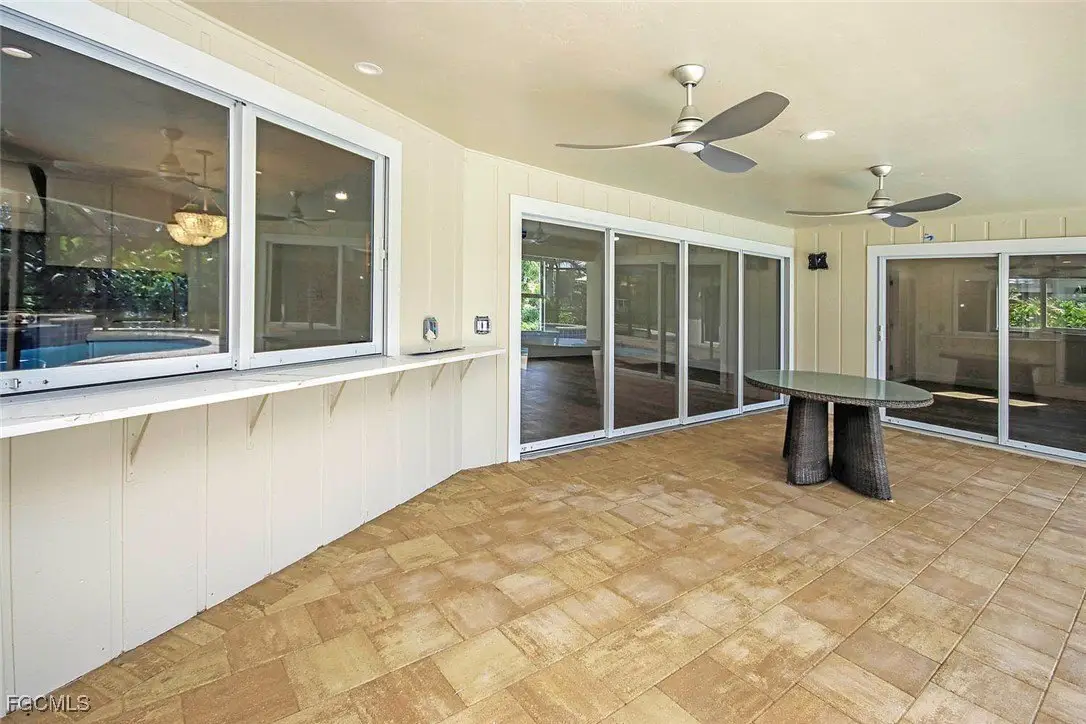 The ultimate Sanibel retreat is ready for you! Located in the sought after neighborhood of Shell Harbor, this luxurious and spacious, easy living home is totally remodeled with a new stone coated, steel roof in 2021. This 3 bedroom, 2 and 1/2 bath, home features all impact windows and doors, new kitchen and baths with quartz counters and beautiful tile showers throughout. Versatile extra living space off the kitchen/living room could be a den, office, exercise room with extra space for the grandchildren. Easy maintenance, LVP flooring throughout and a laundry room with two, full size stack washers and dryers. Designed for entertaining, the wall of living room sliders provides a stunning view of the pool, spa, professionally landscaped lawn and waterway. New dock with 14,000# lift, new landscaping and irrigation. Kings Crown Dr. is located on the sought after east end of Sanibel Island, just a quick walk or bike ride to the beach along with deeded beach access with parking at the end of Lindgren. Easy access on and off the island and a close proximity to restaurants, shopping, shelling and water sports. This is the perfect home to enjoy all that Sanibel has to offer!