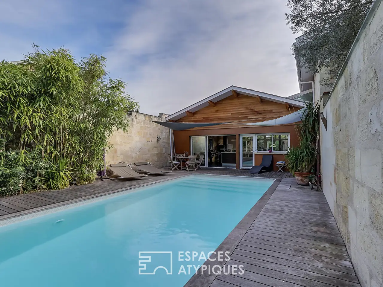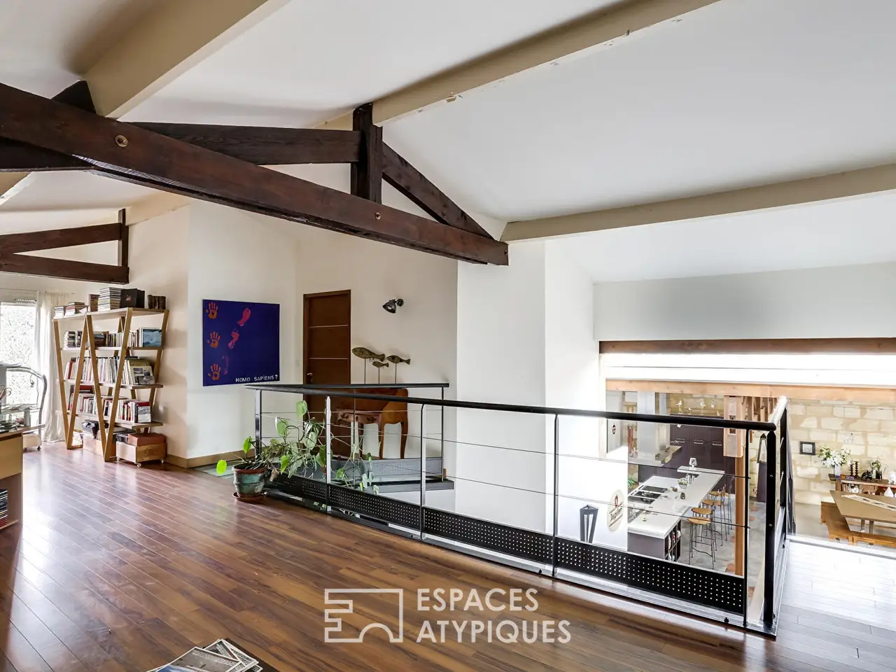 Nestled in a discreet cul-de-sac, close to the Bagatelle Hospital, this 360 sqm loft house offers an exceptional living environment, combining space, comfort and privacy. From the entrance, an elegant paved courtyard leads to a large double garage and the main door of the house. The living room, impressive with its 108 sqm, seduces with its generous volumes and its original wooden frame. This space bathed in light accommodates a warm living room with fireplace, a convivial dining room and a fully equipped American kitchen. On each side, the house opens to the East onto a landscaped garden of 90 sqm and to the West onto a wooden terrace with a heated salt pool of 9×4 m, a solarium and a sauna, inviting you to relax in all seasons. On the ground floor, the master suite benefits from a custom-made dressing room and an elegant bathroom with bathtub and shower, all opening onto a private terrace. An independent studio, perfect for entertaining or teleworking, completes this level, with a wine cellar, a cinema room and a laundry room. Upstairs, a beautiful mezzanine offers an office space, while three bedrooms, each with their own shower room and private balcony, guarantee comfort and privacy for the whole family. Just 10 minutes from Gare Saint-Jean, close to the shops of Begles and Bordeaux, a rare address for a privileged family life, between elegance and serenity. ENERGY CLASS: C / CLIMATE CLASS: C. Estimated average amount of annual energy expenditure for standard use, based on energy prices for the year 2023: between EUR4,190 and EUR5,730 Additional information * 8 rooms * 5 bedrooms * 1 bathroom * 4 shower rooms * 1 floor in the building * Outdoor space : 700 SQM * Parking : 2 parking spaces * Property tax : 6 000 € Energy Performance Certificate Primary energy consumption c : 174 kWh/m2.an High performance housing