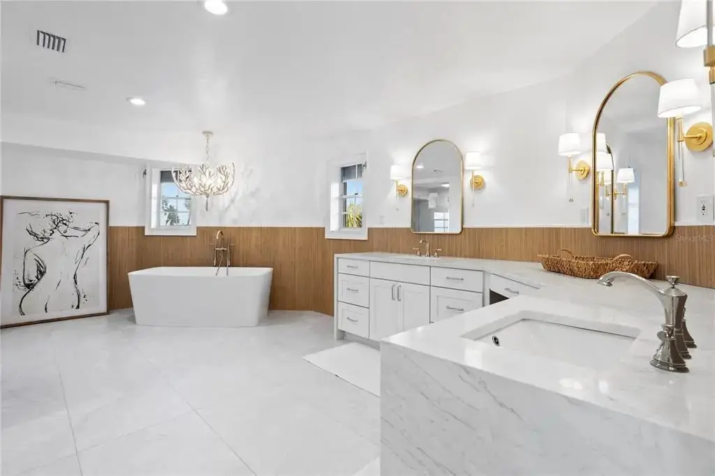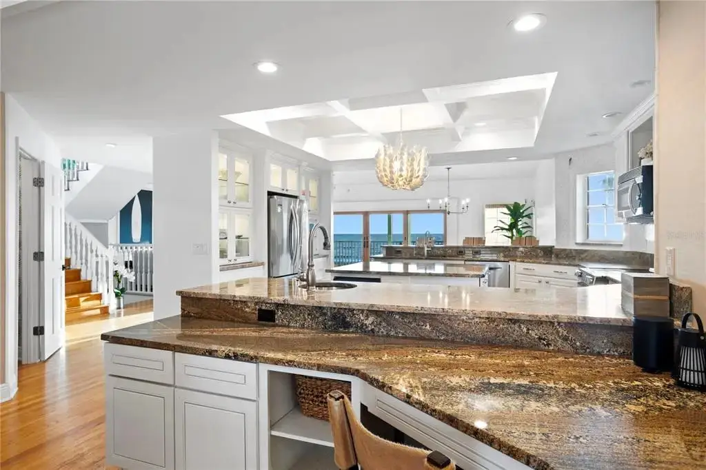 Welcome to your own private sanctuary on Indian Shores—an exclusive waterfront estate that blends timeless architecture, elevated comfort, and unrivaled Gulf-to-Intracoastal access. This one-of-a-kind property spans both sides of Gulf Boulevard, offering direct beach frontage on the west and private boat access on the east. The eastern parcel features a private, covered dock ideal for boating enthusiasts. Buffered by discreet commercial land, this area offers additional potential for creative expansion, boutique business, or investment. To the west, the main residence rises gracefully above the dunes, allowing you to step directly onto the sand from your private beachfront terrace. Privately commissioned and perfect for those with passion for refined living, the estate was thoughtfully designed for those who appreciate both sophistication and ease. Panoramic Gulf views greet you the moment you step into the elevated living areas, while rich interior finishes and a custom chef’s kitchen elevate every gathering—from vibrant entertaining to peaceful mornings with a sea breeze. The second floor offers an effortless flow: from the expansive living and dining spaces to a family room ready for game nights and two beautifully appointed bedrooms. Ascend to the third-floor master retreat—a true haven in the sky. With a spa-inspired en-suite bath, oversized walk-in wardrobe, and serene sitting area, it’s a place to unwind and watch the sunset melt into the ocean, wine glass in hand. Multiple balconies provide spectacular indoor-outdoor living, ideal for intimate mornings or hosting unforgettable beachside soirées. Below, the first level delivers function and flexibility, with an oversized garage, spacious workshop, storage suite, and additional half bath/beach bath. A detached guest house completes the estate, offering full privacy for guests or the perfect opportunity for a luxe rental, home office, or artist’s retreat. This is more than a home—it’s a once-in-a-lifetime coastal estate, crafted for those who demand the exceptional. Rarely does such a property become available on one of Florida’s most desirable and exclusive stretches of shoreline.