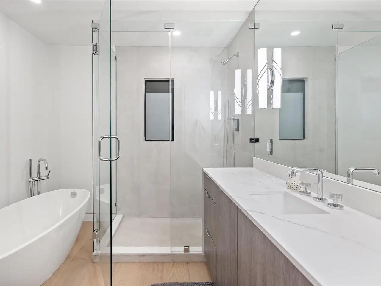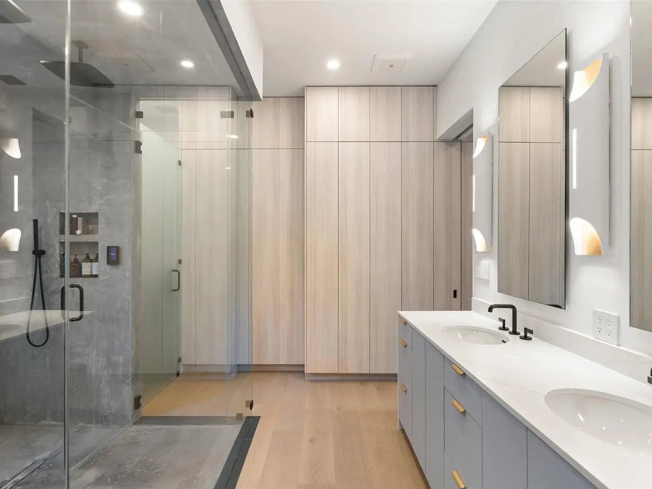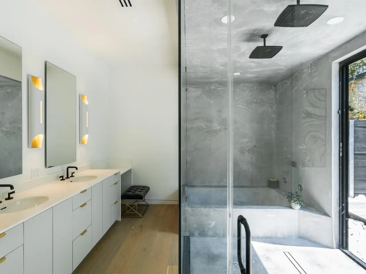 Spa-inspired bath with dual rainfall showers