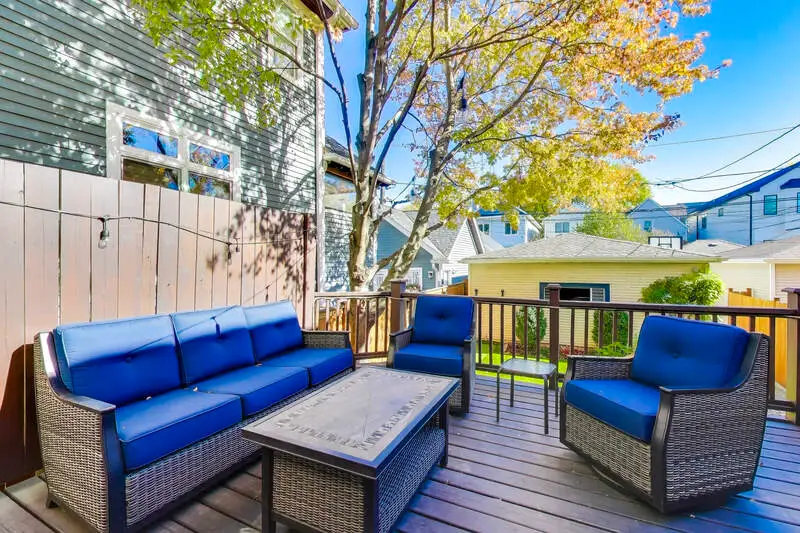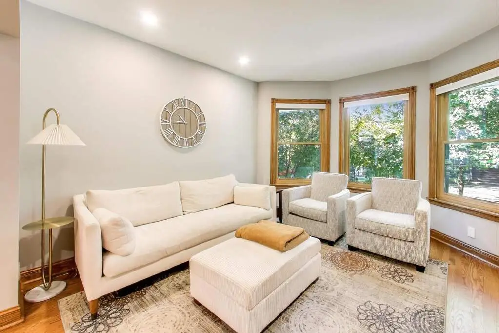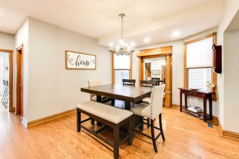 Stunning North Center home in the coveted Coonley School District! Beautifully updated 5-bedroom, 4-bathroom residence blending classic craftsmanship with modern luxury. Situated on one of the area's most charming tree-lined blocks, this home features hardwood floors, rich natural woodwork, solid-core doors, and designer lighting throughout. The 2020 custom kitchen showcases high-end shaker cabinetry with integrated lighting, quartz countertops, a white glass tile backsplash, and premium appliances including a DCS range and Bosch dishwasher. Upstairs, vaulted ceilings highlight the spacious primary suite with Juliet balcony, skylight, and a nearly remodeled spa-like bath boasting Grohe fixtures, rain shower, jetted Neptune tub, dual sinks, and abundant natural light. The finished lower level offers a bright open layout, full laundry room, living area, bedroom, new full bathroom, and a convenient side entry. Enjoy a recently turfed backyard complete with putting green, large entertaining deck, and two-car garage. Experience the welcoming community vibe with popular neighborhood block parties. Steps to the Brown Line, Welles Park, Sulzer Library, Old Town School of Folk Music, restaurants, shops, and the Davis Theatre-this home has it all!