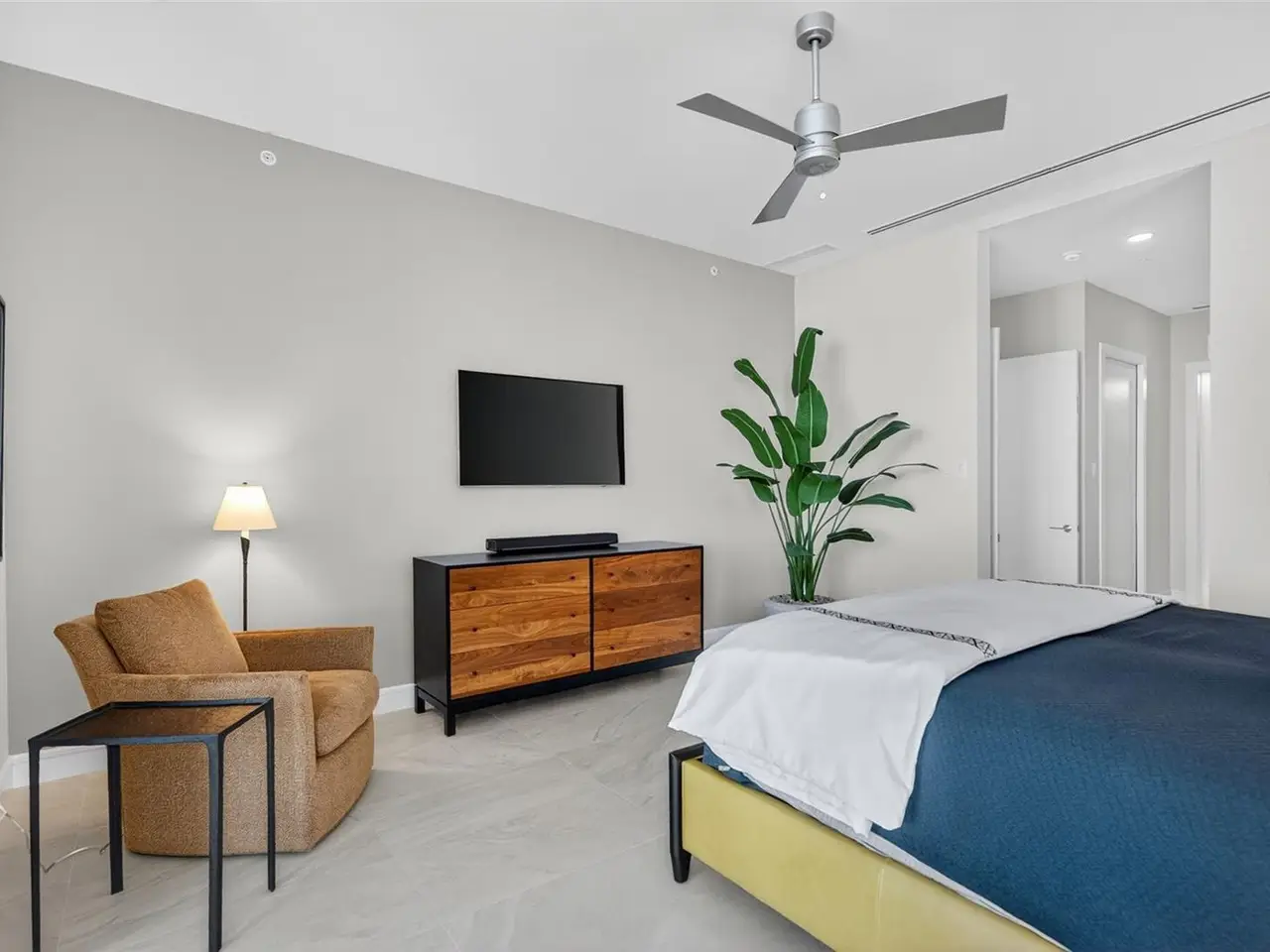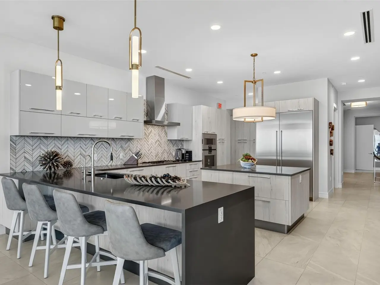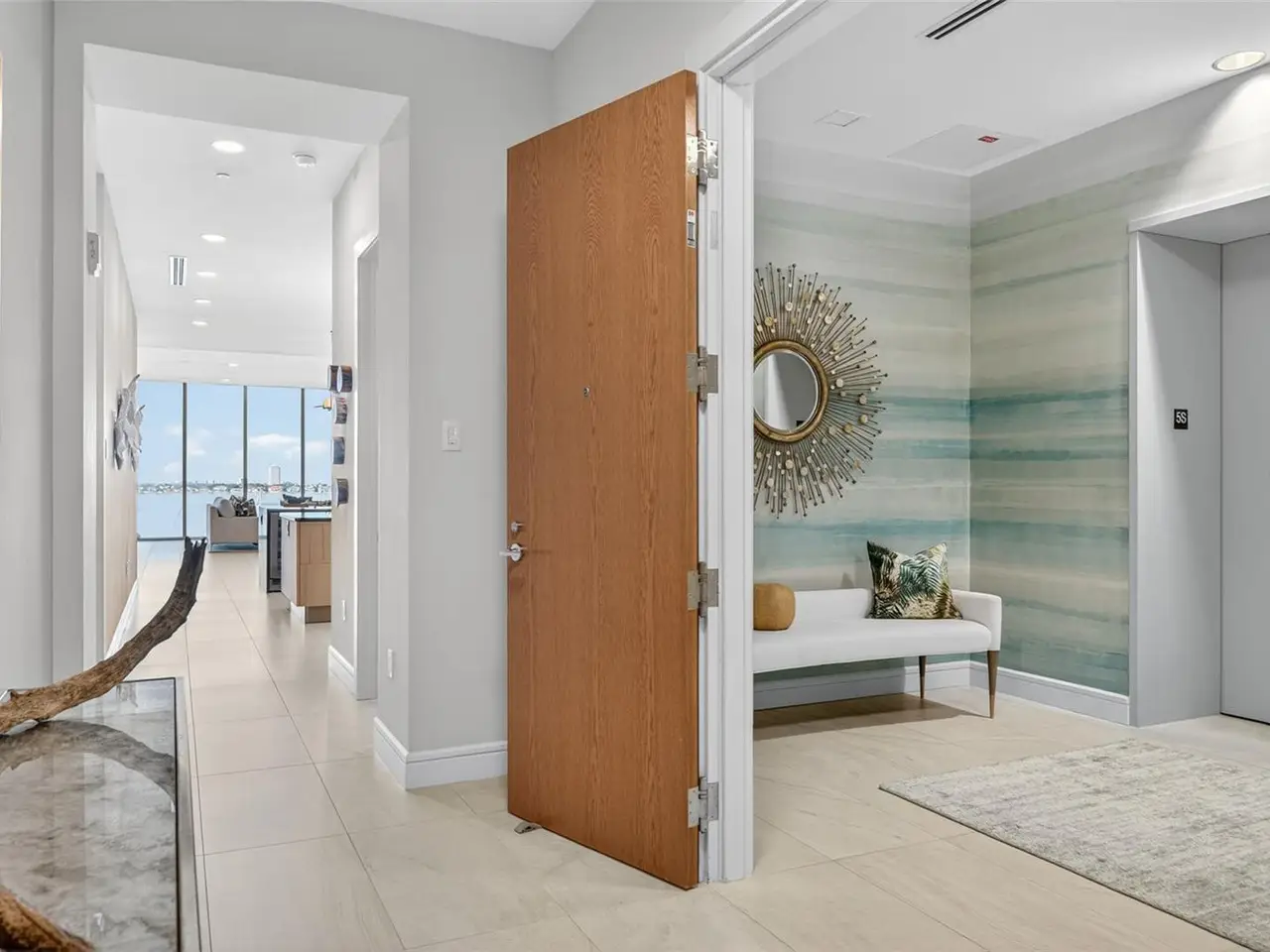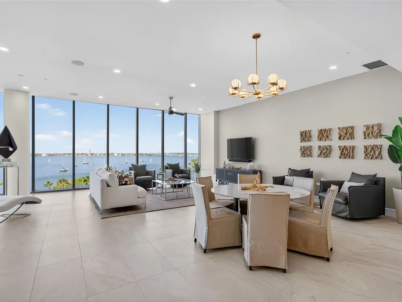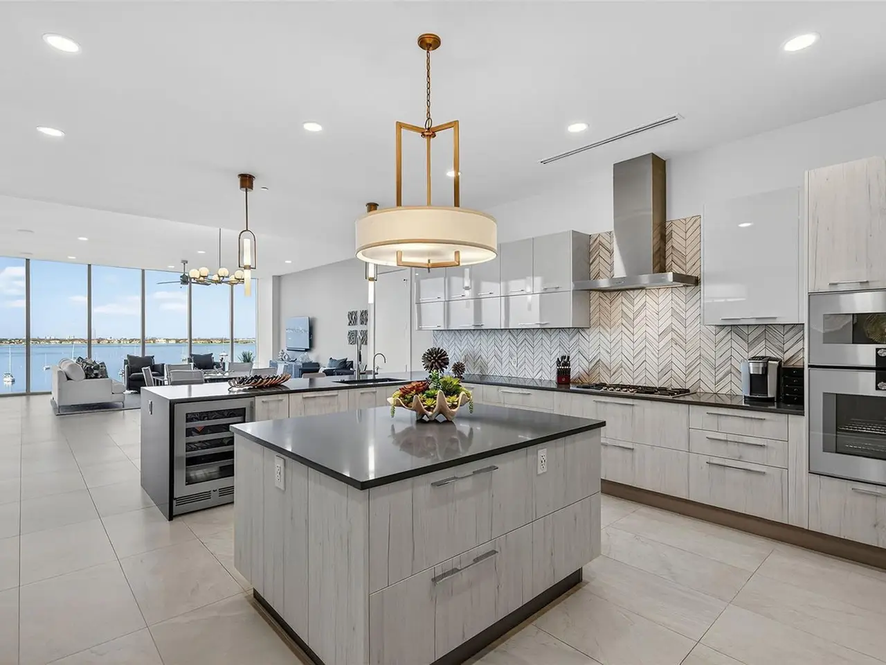 If you’re looking for a downtown condominium with unparalleled views of the Bay and City lights, framed by the drama of a panoramic southwest corner, look no further than this exceptional EPOCH residence in Sarasota’s most desirable walkable neighborhood. Arrive via your private elevator foyer and be greeted by walls of glass showcasing sweeping vistas from Marina Jack to Big Pass and the Gulf beyond. Spanning 3,600 air-conditioned square feet, this coastal contemporary home blends sophisticated style, smart technology, and exceptional comfort. Soaring ceilings and an open floor plan enhance the grand scale of the great room, dining area, and expansive terraces, creating seamless spaces for both intimate living and large-scale entertaining. The gourmet kitchen is a true centerpiece, with a large island, bespoke Cucine Ricci Italian cabinetry, quartz countertops, and ultra-premium Gaggenau appliances including a six-burner gas range, double ovens, side-by-side refrigerator/freezer, and wine refrigerator. Access to the terrace with a summer kitchen makes indoor-outdoor living effortless. The owner’s retreat is an unrivaled sanctuary with direct bayfront terrace access, generous custom walk-in closets, and a spa-inspired bath featuring a curbless walk-in shower, sculptural soaking tub, double vanities, and two private water closets. The guest wing includes two en-suite bedrooms and a private den/TV lounge, providing comfort and privacy for family and visitors. Every finish speaks to refined living, from large-format porcelain flooring to Lutron automated shades, smart lighting controls, multi-zone air conditioning, and an oversized laundry room. A private storage space and two secure deeded parking spaces further elevate convenience. At EPOCH, residents enjoy world-class amenities: a 70-foot recreation and lap pool with spa, fire tables, pool bar and grill; a dramatic rooftop terrace; a Residents’ Club; state-of-the-art fitness center; massage suite; steam showers; and a private guest suite for visitors. Meticulously conceived to honor the Sarasota School of Architecture, EPOCH offers just 23 exclusive residences where contemporary elegance and unmatched quality converge. Nestled on the shoreline of Sarasota Bay and steps from downtown’s cosmopolitan core, this is the pinnacle of Gulf Coast living.