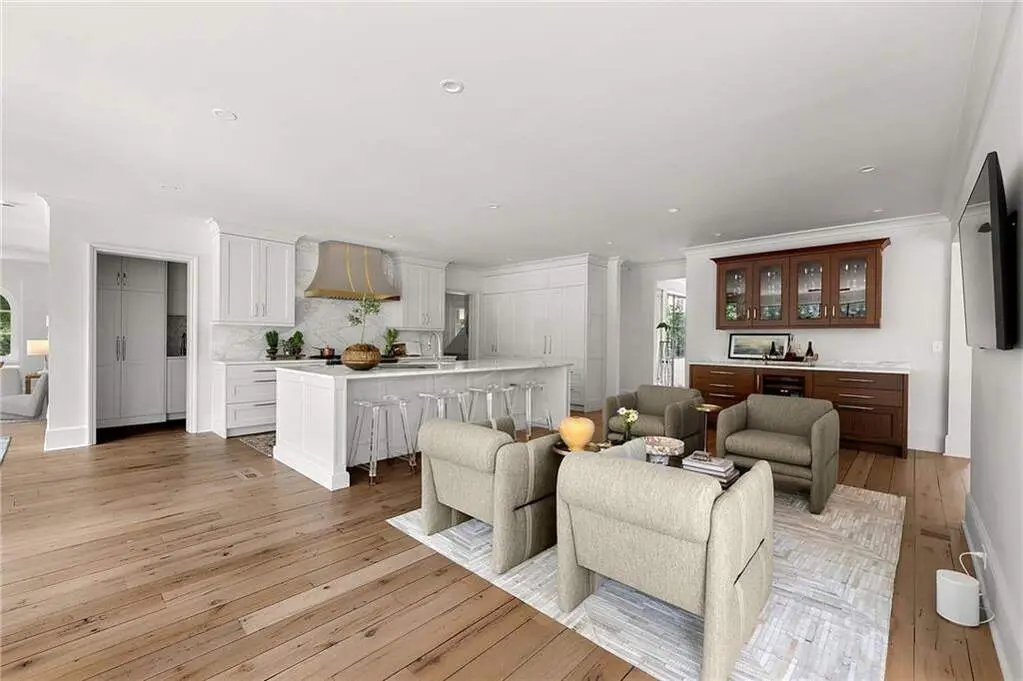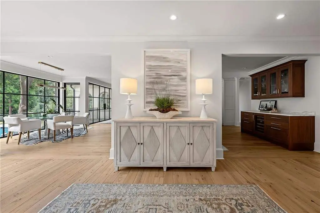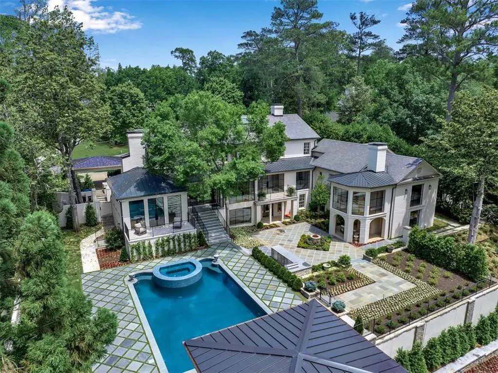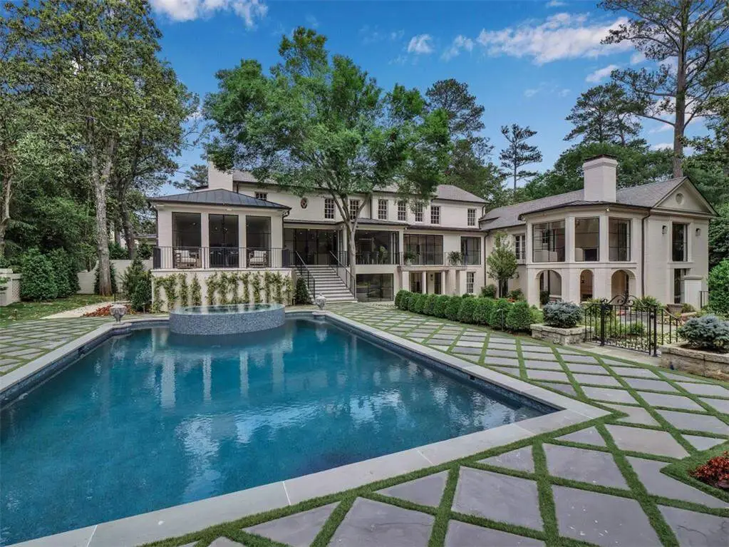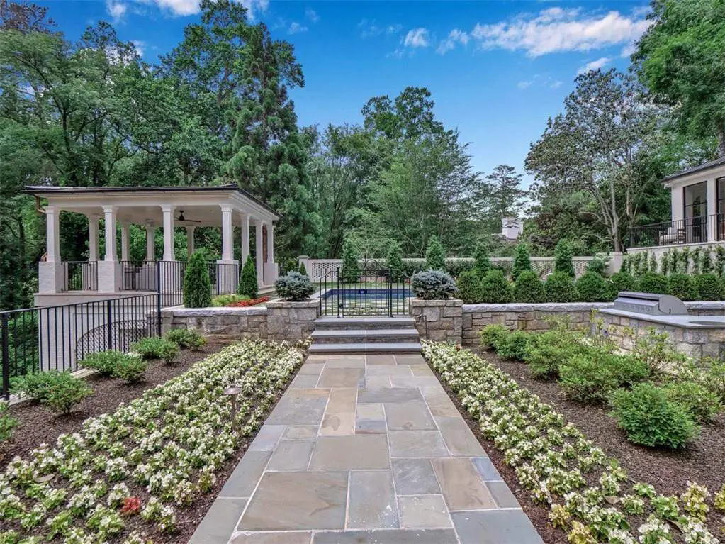 Introducing a grand Buckhead classic, brilliantly reimagined by Buckhead Development and Tish Mills Interiors. With an eye toward honoring its history and stateliness, the design-build team fused architectural pedigree with modernization to effectively create a home that lives like brand new. Built in 1955, this fabulous estate is happy and bright, shining more beautifully than ever. Every detail reflects a masterful renovation, starting with the original front door, restored and fitted with replated decorative knobs. Inside, natural light plays a starring role-spaces have been opened dramatically, with new massive walls of steel windows and doors washing the interiors with sunlight. Removal of walls now allows the curves of the foyer's staircase to make an elegant statement, leading the eye up to the striking leaded-glass skylight. Reclaimed wide-plank white oak flooring spans the main level, with a contemporary mitered chevron pattern in the foyer to set a tone of refined craftsmanship. Simplified moldings and chic trimwork offer a lighter, more modern aesthetic, while the six gas fireplaces received sleek mantle upgrades. The formal dining room now opens to its own courtyard and kitchen garden, and the main level study is both sophisticated and comfortable. The kitchen is a masterpiece by Design Galleria, centered around a Peacock Blue La Cornue CornuFe Series range beneath a custom hood. Enjoy beauty and function with marble countertops, Baldwin hardware, Miele refrigerator/freezer, wine storage, and adjacent scullery with two additional ovens, ice maker, and prep sink. The main floor is ideal for hosting on a grand scale, with a spacious keeping room and breakfast area, plus new steps from the kitchen leading directly to the pool. The accordion-style steel doors open to a balcony overlooking the garden and pool, a perfect spot to set a bar for a party. The primary suite on the main level is a dream for two-enter from a dramatic vestibule, and immediately notice the new barrel-vaulted ceiling. Dual bathrooms and closets are on either side of the hall, both exquisitely outfitted to rival any spa-in one, find an antique mirrored wall and one-of-a-kind tub sourced from Europe and carved from a single block of marble (the only piece of art you need in that space!). Both are all marble, featuring mosaic marble rugs and spacious showers. Within the primary suite, find a cozy sitting room with fireplace, and a sun-drenched conservatory-style space with motorized shades and dynamic views of the pool and lush grounds. Upstairs, all bedrooms feature smartly reconfigured closets and marble en-suite baths, and the gracefully opened hallway leads to a main laundry room with double washer and dryer. The terrace level offers every amenity: a private guest suite with fireplace and outdoor access, morning bar, recreation room, wine cellar, and large gym finished with nickel gap paneling and gym flooring-all just steps from the pool and spa. The 1.72+- acre grounds of this home are quite spectacular. The English gardens are tailored, while a new, flat grass yard is the ultimate play space. The pool is surrounded by turf and bluestone pavers, and has been re-pebbled and redesigned with an updated spa. The gazebo has been transformed into an entertaining porch, also perfect for birdwatching. A new outdoor kitchen and restored fireplaces, plus new sophisticated landscaping touches throughout, create a uniquely tasteful and functional outdoor space. Beneath the beauty, the home is effectively new: spray foam insulation throughout, all new plumbing and electrical, tankless water heaters, new HVAC systems, and a modern alarm system. Parking is plentiful, with a brand new carport (easily enclosed, if preferred), a single-car garage with EV charger (near the guest suite for a private entrance), a two-car garage with an organized tool room, discreet service entrance via a cul-de-sac, and dedicated bike storage area.