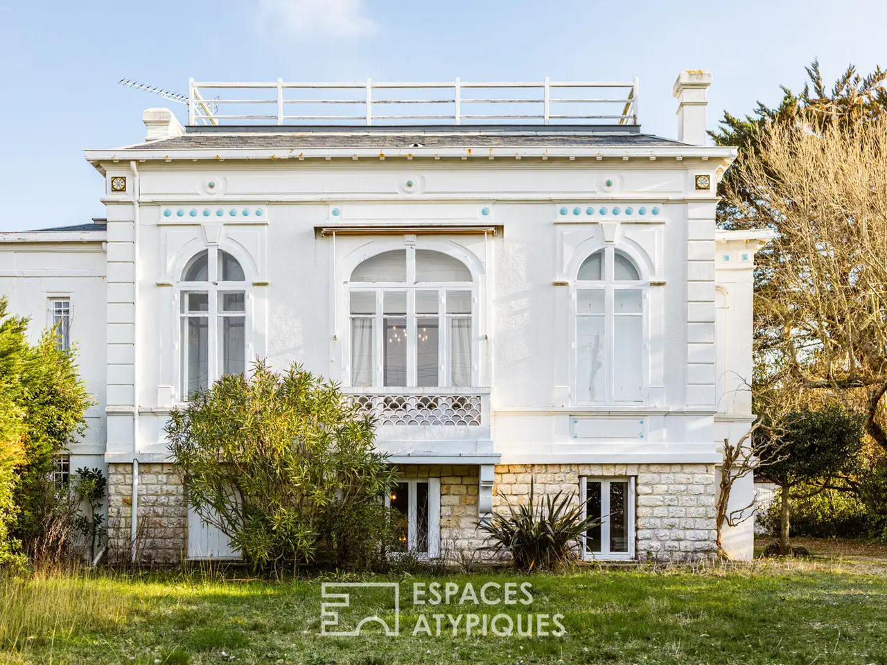 EXCLUSIVE ATYPICAL SPACESLocated in Vaux-sur-Mer in a popular residential area, this late 19th century bourgeois villa of approximately 213 m2, proudly set in the heart of a plot of 1349 m2, just 120 m from the sea and the beaches , reflects the splendor of a bygone era with its ornamental elements on the facade with its enamelled turquoise blue flowers. A remarkable, multi-faceted architecture awaiting renovation.With an inverted lifestyle, the porch with its majestic cut stone staircase and its arched transoms reveals an entrance hall with a period cement tile floor, itself revealing the living spaces. The living-dining room with its parquet floors and its molded oak coffers on the ceiling offers a living space capable of accommodating a stove or a fireplace existing at the time with a magnificent ceiling height. Two other rooms are converted into a living room-library and bedroom, both decorated with marble fireplaces and a bathroom. A kitchen with old-world charm with multiple layout perspectives completes this level. On the lower garden level, the sleeping areas offer three beautiful bedrooms and an office. A bathroom, a shower room and a toilet supplemented by a laundry room and a boiler room area with water point offer autonomy with a door which gives access to the garden, thus allowing you to enjoy the garden or the sea in complete quietude.Completing this mansion, an annex of approximately 10 m2 converted into a bedroom with bathroom and toilet is supplemented by an independent garage and an underground wine cellar. At the rear of the garage, with independent access, a studio of approximately 20 m2 is converted into a bedroom with bathroom and toilet, thus offering two bedrooms in addition to the villa for the greatest pleasure of the youngest while a small workshop formerly converted into a painting workshop completes this property.Like a viewpoint, the villa offers a breathtaking perspective and view from the flat roof, accessible by a small exterior staircase: an avant-garde and astonishing point of view for this elegant bourgeoisie. Unmissable and majestic, this sleeping beauty with its wooded garden offers a unique living environment and architecture awaiting projects to restore all its letters of nobility and its splendor of yesteryear.To see without delay.ENERGY CLASS: E / CLIMATE CLASS: E. Estimated average amount of annual energy expenditure for standard use established from energy prices for the year 2021: between EUR3,950 and EUR5,400REF. EALR2189Additional information* 8 rooms* 5 bedrooms* 1 bathroom* 5 shower rooms* 1 floor in the building* Outdoor space : 1349 SQM* Property tax : 2 399 €Energy Performance CertificatePrimary energy consumptione : 268 kWh/m2.yearHigh performance housing*A*B*C*D*268kWh/m2.year59*kg CO2/m2.yearE*F*GExtremely poor housing performance* Of which greenhouse gas emissionse : 59 kg CO2/m2.yearLow CO2 emissions*A*B*C*D*59kg CO2/m2.yearE*F*GVery high CO2 emissionsEstimated average amount of annual energy expenditure for standard use, established from energy prices for the year 2021 : between 3950 € and 5400 €Agency feesThe fees include VAT and are payable by the vendorMediatorMediation Franchise-Consommateurswww.mediation-franchise.com29 Boulevard de Courcelles 75008 ParisInformation on the risks to which this property is exposed is available on the Geohazards website : www.georisques.gouv.fr