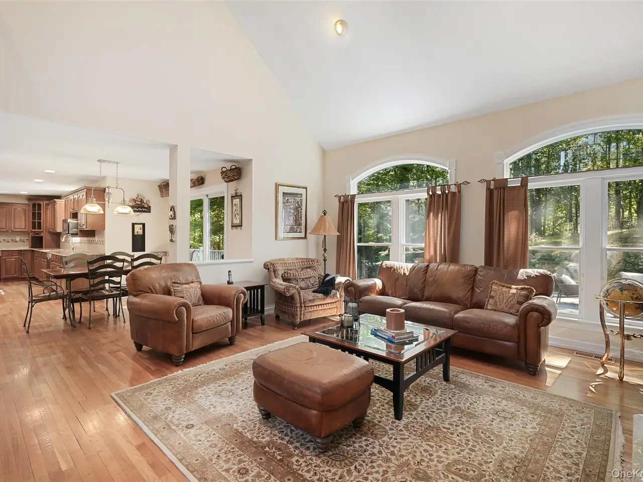 Tucked away on a peaceful cul-de-sac, a long, tree-lined driveway sets the tone as you approach this 4-bedroom, 3.5-bath colonial set on 4 private acres in the award-winning Katonah-Lewisboro School District. This home offers a welcoming front porch, a 3-car garage, and an ideal blend of space, comfort, and privacy. The main level features a large kitchen opening to an expansive family room with open-concept flow, perfect for everyday living and entertaining. Upstairs, the oversized primary suite includes generous closets and renovated primary bath. Three additional bedrooms each feature direct bathroom access, providing comfort, convenience, and privacy. The lower level offers an unfinished basement with potential for customization, whether for recreation, fitness, or home office space. Outdoor living includes a spacious deck and recently completed patio with fire pit and sitting area, all surrounded by natural privacy. Don’t miss this exceptional opportunity to make this beautiful property your next home - schedule your private showing today.