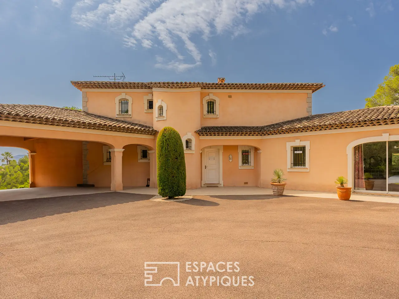 Elegant villa with neo-Provencal charm Nestled in the heart of a sought-after, unspoiled and peaceful neighborhood of La Motte, this charming neo-Provencal villa is located. Built on a vast, wooded plot of 2,476 sqm, this property offers approximately 200 sqm of living space. Designed in the 1990s with elements created by the Compagnons de France, its unique architecture blends authenticity and elegance. Upon entering, a hall leads to a spacious living room, a separate kitchen, a bedroom, and a first master suite with its own bathroom and dressing room, as well as a separate toilet. The layout allows for a smooth and harmonious flow between the living spaces. Upstairs, the landing leads to two other bedrooms with a private balcony offering unobstructed views, a dressing room, a bathroom, two toilets, and a second master suite with its own bathroom. The exterior is a true invitation to the good life. A swimming pool and jacuzzi, a vast 47 sqm covered terrace with a summer kitchen perfect for enjoying the tranquility of the surroundings, as well as generous outdoor spaces, invite you to relax and feel good. The garden, carefully landscaped and planted with olive and cypress trees, offers a green and intimate setting. A full basement houses a large garage and a technical room. A carport and several parking spaces complete this property. With its timeless style, the quality of its materials and its generous volumes, this atypical villa is aimed at buyers looking for a rare residence. Its preserved environment and its unique character make it a privileged place for a fulfilling family life or a seasonal rental project. ENERGY CLASS: C (102 kWh/sqm/year) / CLIMATE CLASS: C (18 kg CO2/sqm/year). Estimated average annual energy expenditure for standard use, based on energy prices as of August 15, 2015: EUR1,409 (including subscription).REF. 12386Additional information* 6 rooms* 5 bedrooms* 2 bathrooms* 2 shower rooms* Outdoor space : 2475 SQM* Parking : 2 parking spaces* Property tax : 2 741 €Energy Performance CertificateEPC : 102 kWhEP/m2.year* A 450GHG : 18 kgeqCO2/m2.year* A 80Agency feesThe fees include VAT and are payable by the vendorMediatorMediation Franchise-Consommateurswww.mediation-franchise.com29 Boulevard de Courcelles 75008 ParisInformation on the risks to which this property is exposed is available on the Geohazards website : www.georisques.gouv.fr