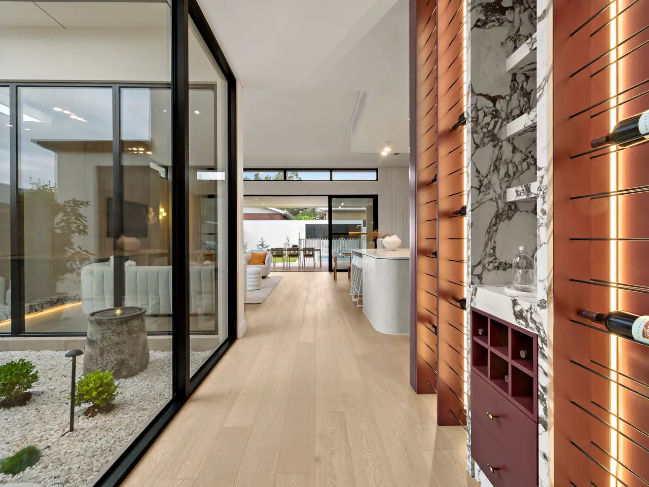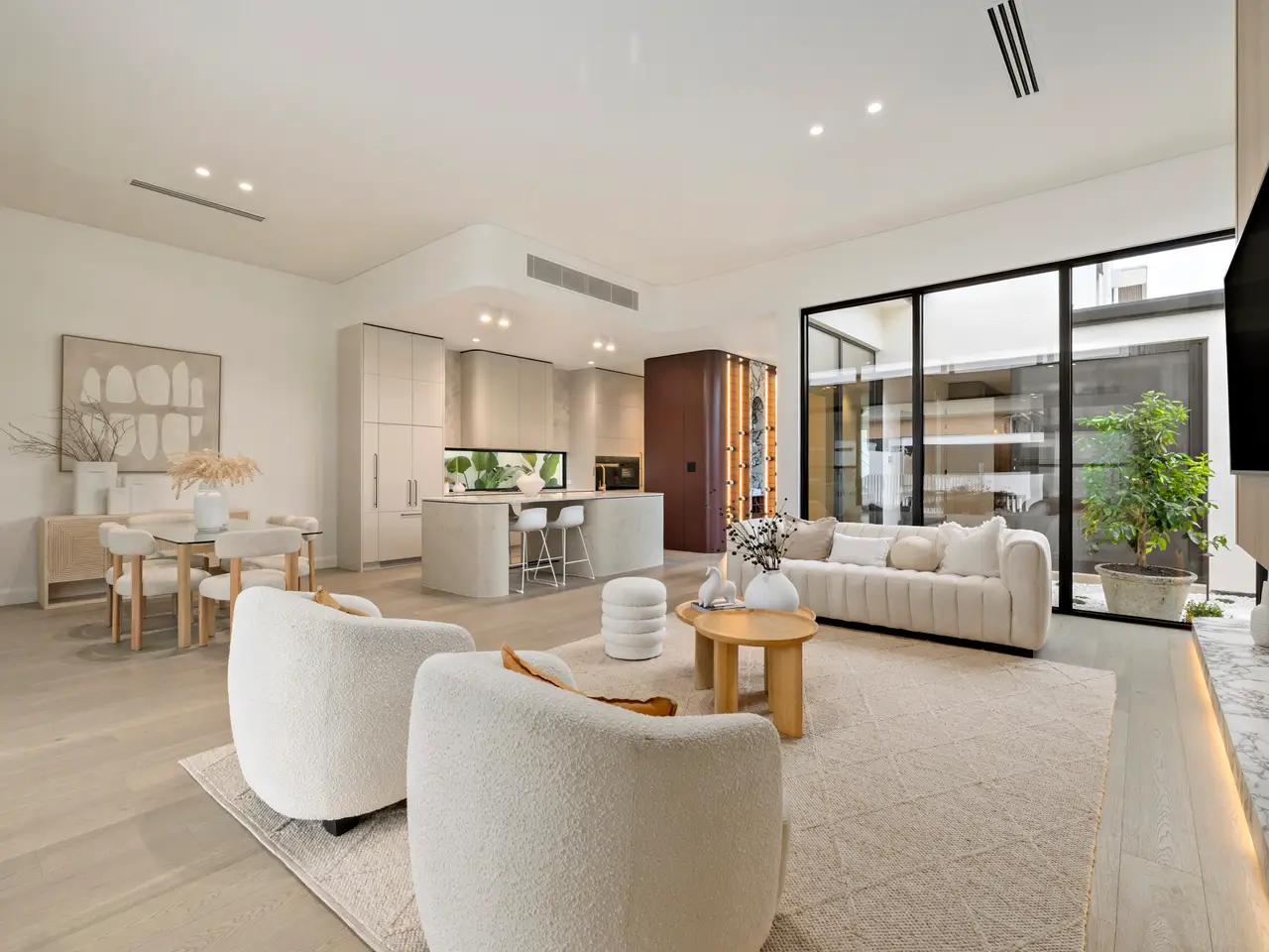 Distinctively different, bespoke and bedazzling, this freshly built architectural masterpiece raises the bar in exceptional eastern suburbs living. Perfectly positioned on a treelined street within beautiful Kensington Gardens, it is a show-stopping four-bedroom residence delivering not just divine design, but an abundant lifestyle near premium local amenities. Exquisite landscaping, a sky-high cedar entry door and a soaring 6.15m atrium foyer introduce the flawless interior drenched in natural light, thoughtful automation, premium engineering and tasteful luxury. In a ravishing home brimming with wow-factor there are many highlights where the beauty, comfort and convenience are found both visually and in the detail. Discover the sense of opulence created by architectural curves, on-trend venetian plaster and natural limestone finishes while sensor lighting, intelligent security, and next-level automation provide premium functionality in this home of distinction. An expansive layout comprises the skylit entry lounge, generous open plan living, guest powder room, premium laundry and lavish primary suite with adjoining courtyard at ground level. On the upper level a third living area, inbuilt study nook, and sublime three-way bathroom accompany three blissful bedrooms including a second master suite. Summer living and outdoor entertaining is done in leisurely style from the spacious alfresco to the Mediterranean-style poolside pavilion and lush landscaped lawn. Elevating the outdoor spaces to luxury status are natural limestone benchtops in the alfresco, the mosaic-tiled swimming pool featuring four Venturi spa jets, and that beautifully engineered pool pavilion with inbuilt seating. - 2025-built luxury home: four bedrooms, three living areas, 3.5 bathrooms - Automated security entry gates and video intercom - Samsung electronic door locks - Commercial double glazed windows - Automated window dressings - LED and feature lighting throughout - Motion sensor lighting in interior wet areas - 6.15m atrium ceiling - 3.6m living area ceiling - Climate controlled and individually zoned reverse cycle air conditioning - Engineered timber floorboards and 100% wool carpets - Built-in and backlit stone-finished wine storage rack - Real Flame gas fireplace: venetian plaster + Calacatta reconstituted stone surround - Miele 90cm gas cooktop and rangehood, pyrolytic oven, steam oven, warmer drawer - 3m curved island bench with natural limestone top and venetian plaster finish - Butler's pantry with limestone benchtops and integrated Miele dishwasher - Integrated Fisher & Paykel fridge/freezer - Venetian plaster, reconstituted Calacatta stone and porcelain tile bathroom finishes - Undermount bathroom sinks and in-wall cisterns - Azul freestanding bathtub in the upstairs bathroom - Primary suite plus courtyard, opulent ensuite, wood-panelled LED-lit walk-in robe - Upper-level master suite: walk-in robe and ensuite - Third and fourth bedrooms with built-in robes - Upstairs study nook with built-in desk and storage - Expansive alfresco: built-in Beefeater Signature Series barbecue, commercial bar fridge, natural limestone benchtops - Poolside pavilion featuring inbuilt stone seating - 7m mineral swimming pool with mosaic tiling, stone surrounds, underwater lights, Venturi spa jets, 13kW heat pump, automated filtration system - Poolside outdoor shower - Discreet garden storage area - Double garage with premium built-in storage - Zoned Magill Primary School and Norwood International High School - Close to Pembroke School, St Peters Girls School, St Joseph's Tranmere - Shopping and dining at The Parade Norwood, Magill Road, Burnside Village, Penfolds Magill Estate RLA 285309