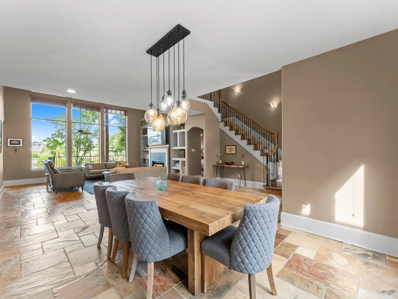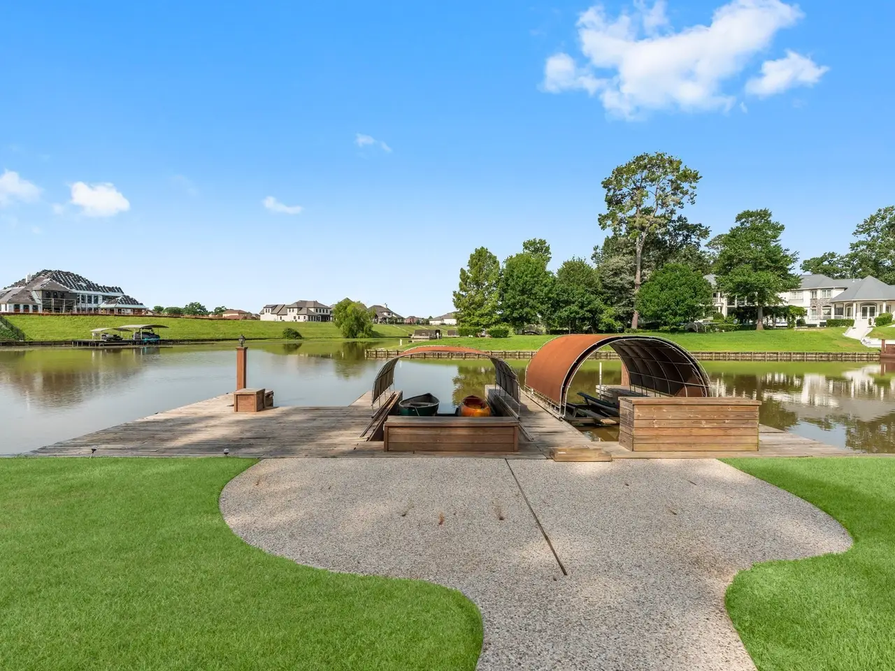Welcome to your new Waterfront home with panoramic views from the beautiful, level back yard! Imagine relaxing by the inground pool, the covered back patio & by the firepit while watching the boats go by. Home sits on one of the widest canals with a short boat ride to the lake. Once you walk in the front door, you'll be WOWED by the scenery that the soaring ceilings/grand windows provide. This well-kept home with an open floor plan has five bedrooms, four baths & a three-car garage. Ample storage throughout including two pantries & huge linen closet. The spacious gourmet kitchen also provides amazing canal views with plenty of cabinet space, granite counter tops, large island with breakfast bar & all stainless steel appliances. This space is perfect for entertaining! Upstairs there's an oversized game room ideal for a pool table or ping pong & TV viewing area. The large backyard is gently sloped, perfect for any/all lawn games! Lawn overlooks two covered boat slips & swim pier. Manned, gated neighborhood!