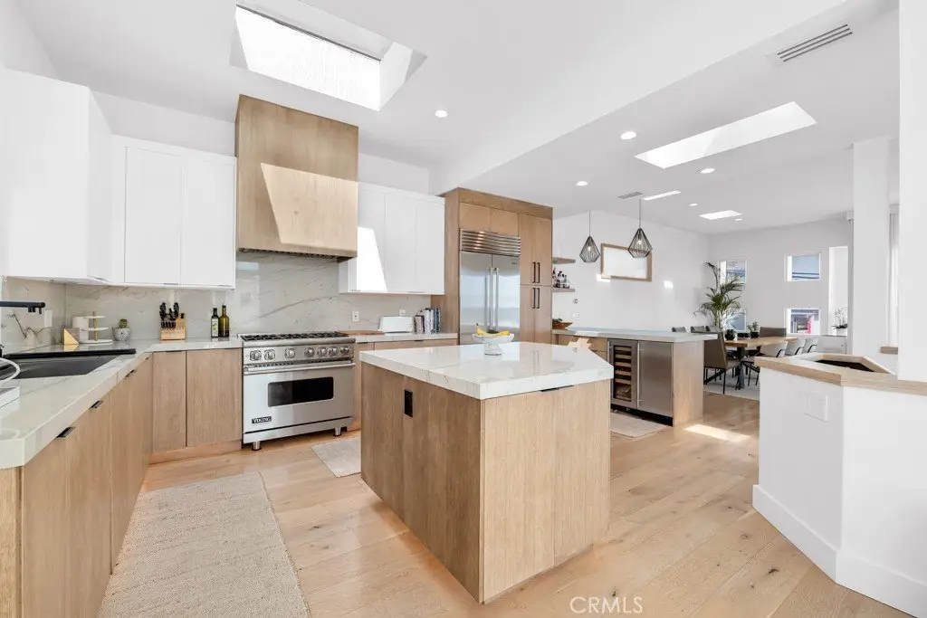 YOUR PRIVATE ARCHITECTURAL CONTEMPORARY BEACH HOUSE AWAITS! BREATHTAKING, PANORAMIC 180-DEGREE WHITE WATER AND COASTLINE VIEWS FROM MALIBU TO PALOS VERDES! MAJOR REMODEL RENOVATION COMPLETED 2021! MODERN FLOORPLAN, ELEVATION AND DESIGN! PREMIUM LOCATION IN THE SAND SECTION OF MANHATTAN BEACH, JUST FOUR HOUSES UP FROM THE STRAND, JUST STEPS TO THE BEACH & BOARDWALK YET ELEVATED TO GIVE YOU THE MOST INCREDIBLE PANORAMIC VIEWS, THE PERFECT LOCATION! Luxury and effortless BEACH LIVING converge at 129 Moonstone Street, architecturally stunning, with TEN FOOT CEILINGS, contemporary (2,143 SQ FT) SINGLE FAMILY HOME. (NO HOA!) This rare residence sits quietly WEST OF HIGHLAND on a PRIVATE and QUIET STREET offering the ultimate in exclusivity and tranquility. Inside, nearly every inch has been thoughtfully reimagined for modern luxury, from the ten-foot ceilings and walls of glass to skylights to the wide-plank white oak hardwood floors and designer finishes throughout. The sun-lit, open-concept floorplan is ideal for sophisticated entertaining or laid-back coastal beach days, featuring a state-of-the-art chef's center island gourmet kitchen with quartzite stone countertops, Viking and Sub-Zero appliances, a wine fridge, dry bar with ice maker, and a seamless transition to indoor/outdoor dining on one of four private balconies. Retreat to the palatial primary suite with marble fireplace, TWO WALK-IN CLOSETS, spa-like bath with freestanding tub and oversized shower. ALL THREE BEDROOMS ARE ENSUITES and OVERSIZED with lavish, modern baths, and an additional versatile DEN/OFFICE ADDS flexible space for work or guests. Enjoy peace of mind and effortless living with a fully integrated SMART HOME SYSTEM--security, cameras, Sonos whole-home sound, lighting and climate--all controlled via Apple HomeKit. Additional highlights include a built-in marble fireplace entertainment center in living room, interior laundry room, tankless hot water heater, whole-home filtration and softener, central A/C and heat, recessed and under-cabinet lighting and ceiling fans throughout. The finished two-car garage with Tesla charger and extra storage adds convenience, while a city-funded undergrounding project (now in Phase 3 of 4 phases), promises future value and EVEN BETTER panoramic white water and coastline VIEWS! CAN BE SOLD FURNISHED. 'BRUSH-FREE NEIGHBORHOOD!' JUST MINUTES TO LAX. CONCESSIONS.