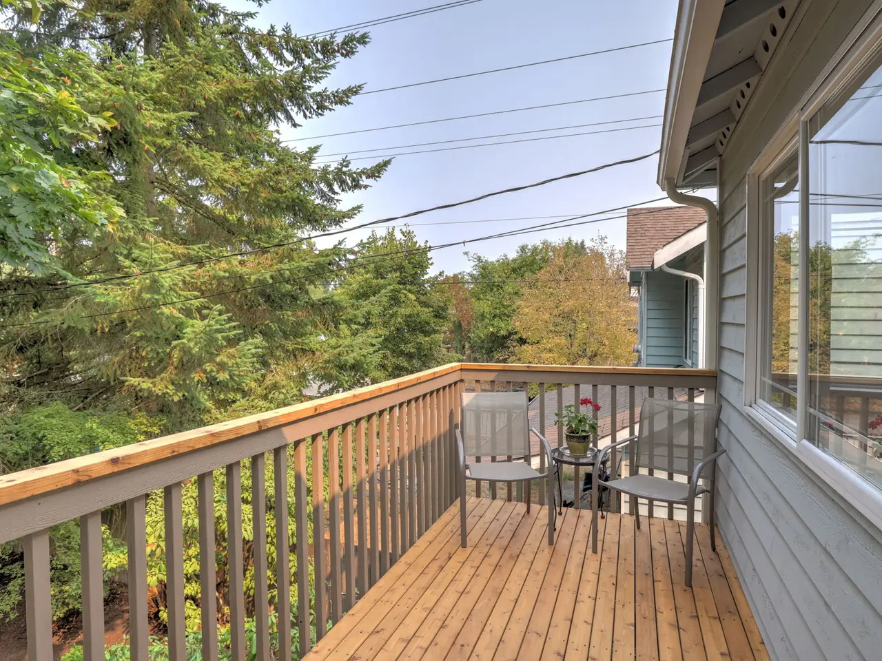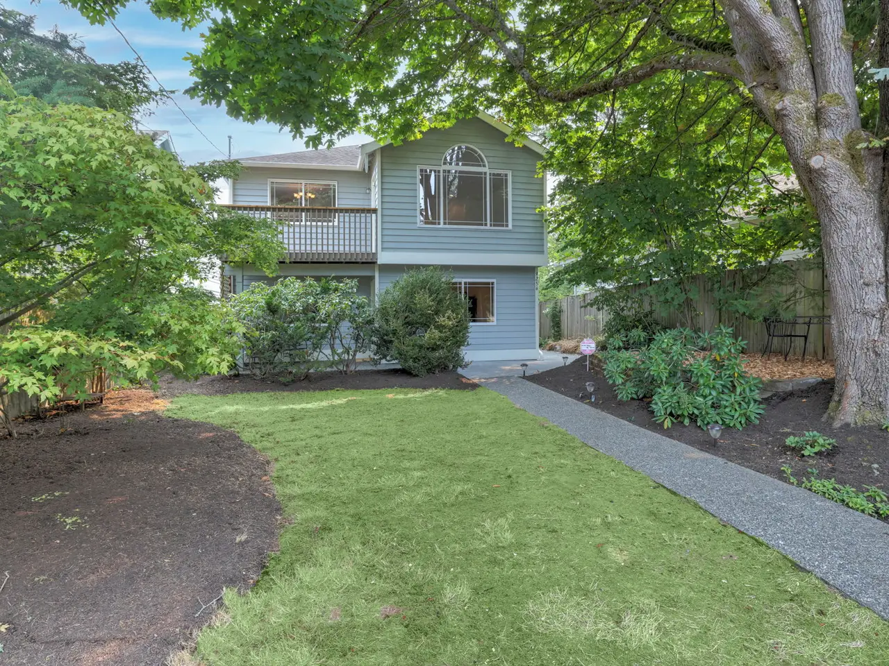 Looking for an urban home, nestled in mature landscaping, for a suburban feel? Welcome to this rare, light filled, spacious, 2389 square foot, five-bedroom, three full bath home. Crisp white, freshly painted interior with rounded corners for a modern touch. Cathedral ceilings, newly finished hardwood floors, newer stainless steel appliances, new upstairs carpets, recently painted exterior. Upstairs three large bedrooms and two full baths. Great option for multi-generational living or revenue stream from lower level with deluxe wet bar, two large bedrooms and a full bath. Oversized lot with room for play, entertaining, or just to enjoy. Alley access to a hard-to-find grand size two car garage with work area, driveway parking for cars or toys. Low traffic street, garden space, and proximity to the QFC, complete this turn-key delightful home.