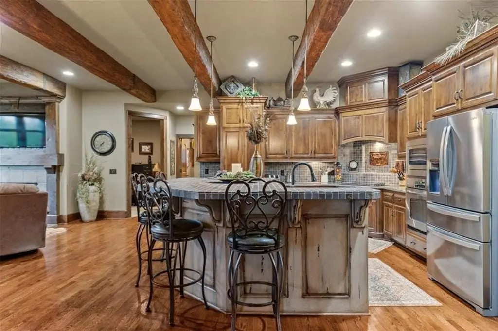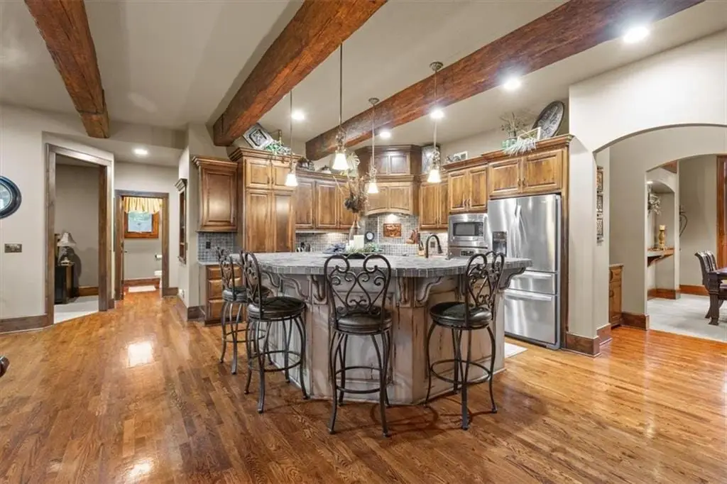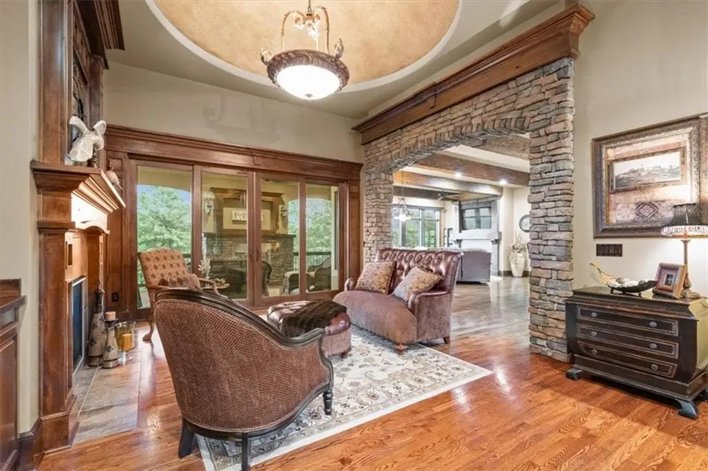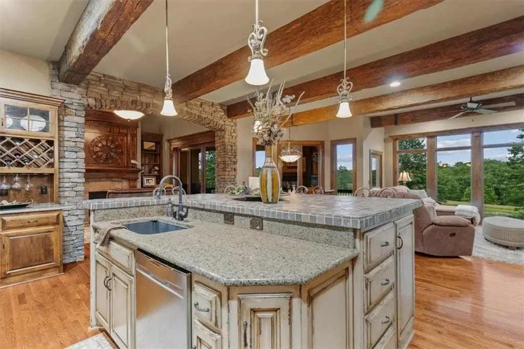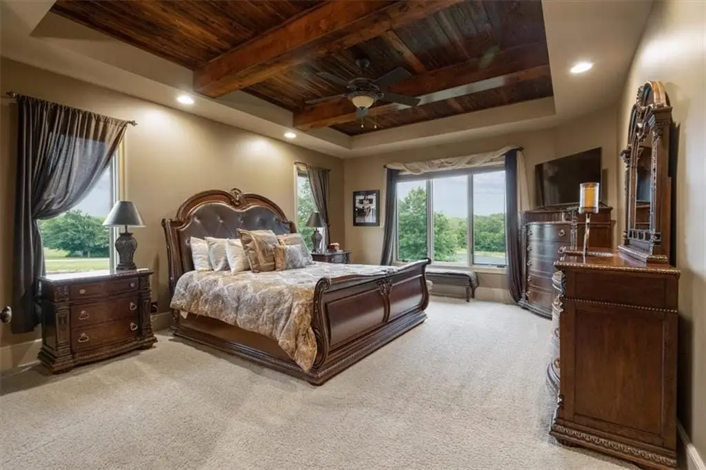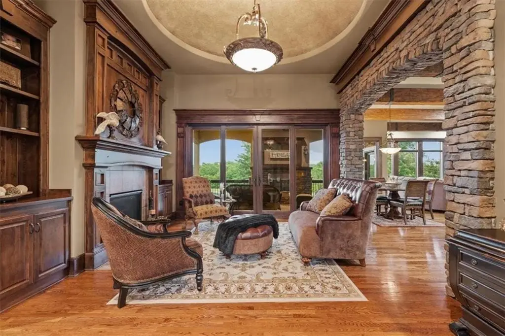 Tucked away in a serene, park-like setting, this stunning custom-built estate offers a rare blend of privacy, luxury, and breathtaking natural beauty. Perfectly positioned on just over 10 acres, the home overlooks picturesque, fully stocked ponds surrounded by mature trees, meticulously maintained grounds, and a backdrop of nature. A covered deck with an outdoor fireplace provides the perfect place to unwind while enjoying the peaceful views, and expansive windows throughout the home bring the beauty of the outdoors in. Inside, you'll find high-end finishes, an open-concept layout ideal for entertaining, and a walkout lower level that leads to a private patio and dock. The thoughtfully designed layout allows plenty of space to add a pool, garden, or additional outdoor features to truly make this your own. A detached 36x48 outbuilding provides the perfect space for a workshop, storage, or hobby area. Whether you're sipping coffee on the deck, casting a line from the dock, or enjoying an evening under the stars, this property is designed for both relaxation and entertainment. With convenient access to Raymore, Lees Summit, and Kansas City, it offers the best of both worlds - secluded countryside living with city amenities just minutes away. This one-of-a-kind property is a rare opportunity - schedule your private tour today!