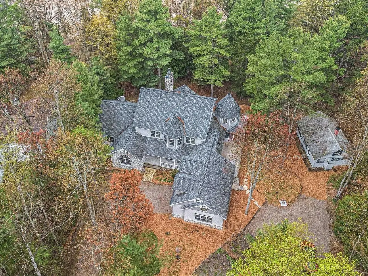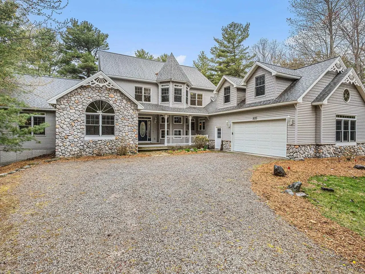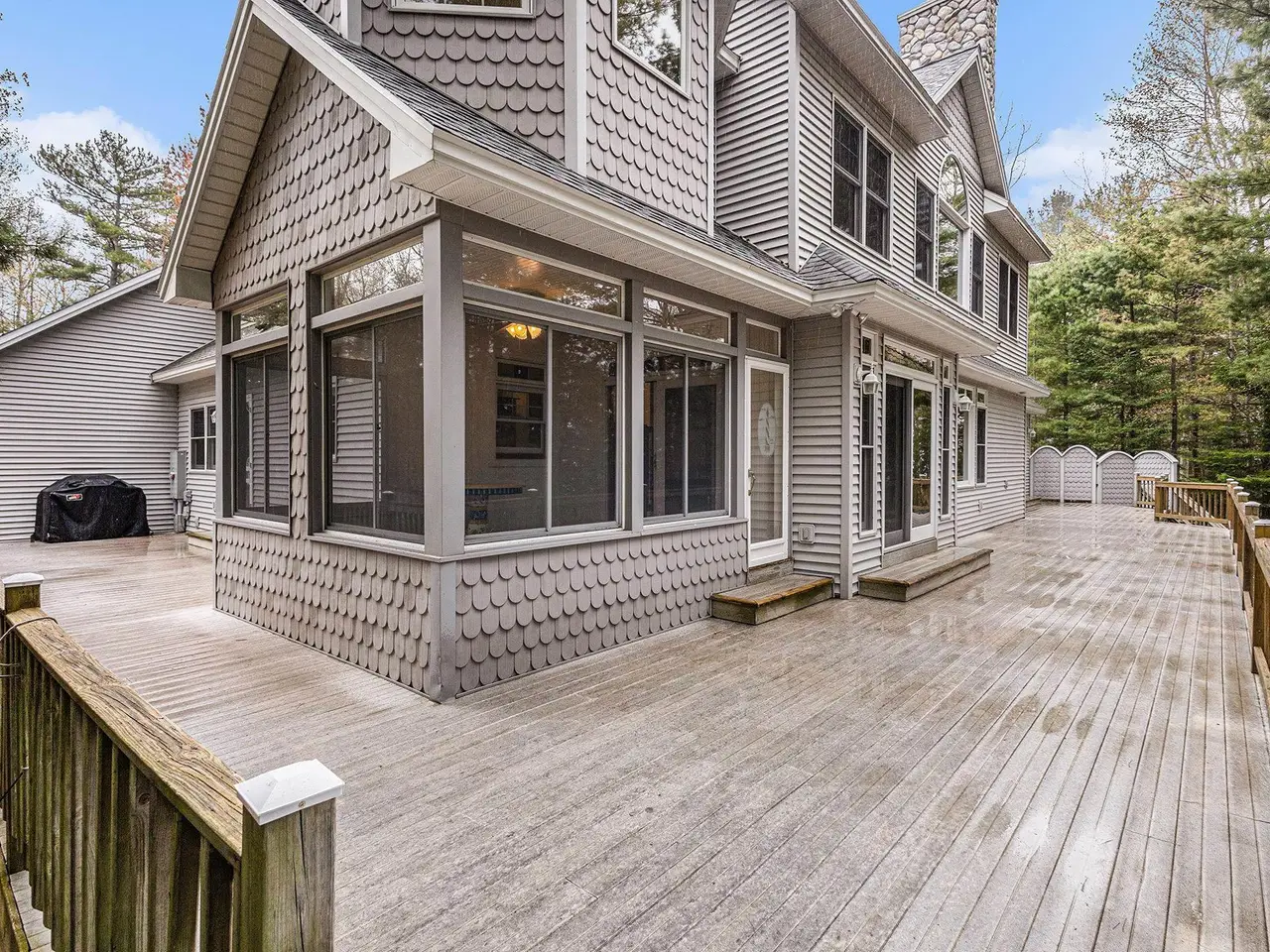 Discover your own piece of paradise with this stunning Lake Michigan waterfront property, where every day feels like a vacation. Enjoy direct access to one of the world's most beautiful freshwater lakes and immerse yourself in the ultimate lakefront lifestyle. Step outside to your 200' of private sandy beach on Lake Michigan and savor the soothing sounds of waves and breathtaking sunsets. Whether you seek relaxation or adventure, this home offers it all: kayak along the shoreline in the morning, spend afternoons boating or paddle boarding from your dock, and gather around a lakeside fire pit in the evening. Experience true Northern living in this stunning Custom Woodcraft home nestled on 3 acres located just minutes from Elk Rapids and Charlevoix. Designed for maximum enjoyment, this spacious retreat features expansive windows and spacious decking. Home features over 4500 sp. ft. of living space, 5 bedrooms and 5.5 bathrooms, thoughtfully designed for comfort and entertaining. The open floor plan showcases quality craftsmanship with natural wood finishes, expansive windows framing water views, and generous living spaces ideal for gatherings or peaceful relaxation. In addition to the main residence, the property includes a charming original Bellaire log cabin, perfect for guests or a cozy getaway, and a large pole barn providing ample space for storage, hobbies, or equipment. Experience the magic of Lake Michigan-embrace serenity, adventure, and the timeless appeal of living by the water's edge. Your ultimate waterfront lifestyle awaits.