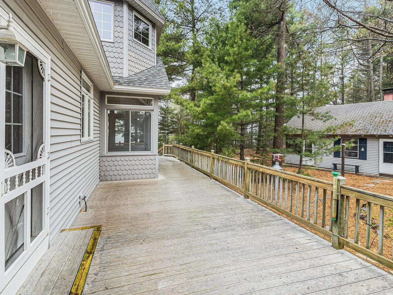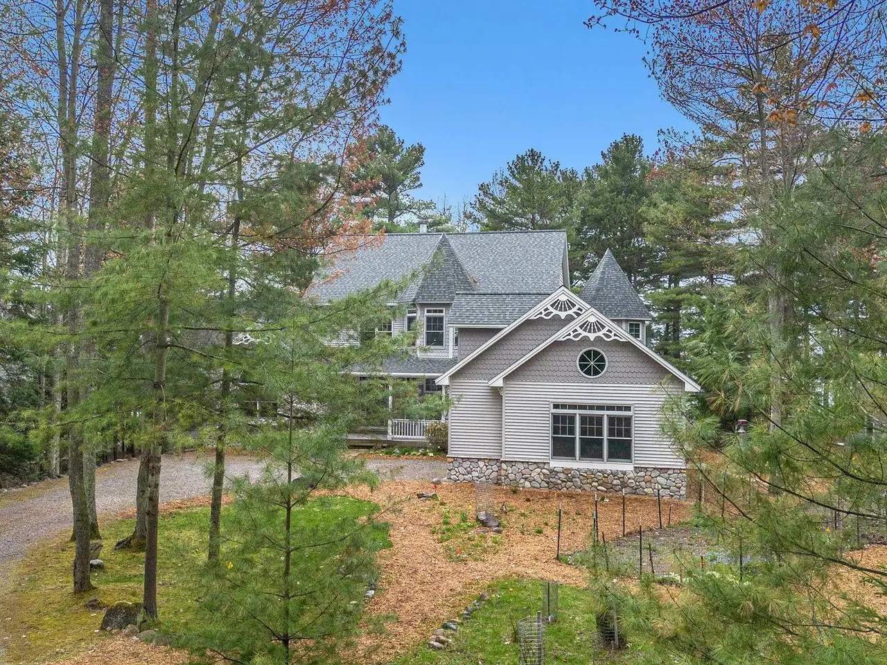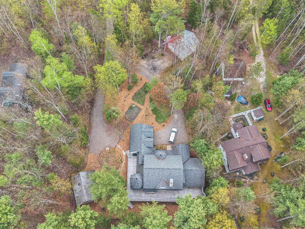 Discover your own piece of paradise with this stunning Lake Michigan waterfront property, where every day feels like a vacation. Enjoy direct access to one of the world's most beautiful freshwater lakes and immerse yourself in the ultimate lakefront lifestyle. Step outside to your 200' of private sandy beach on Lake Michigan and savor the soothing sounds of waves and breathtaking sunsets. Whether you seek relaxation or adventure, this home offers it all: kayak along the shoreline in the morning, spend afternoons boating or paddle boarding from your dock, and gather around a lakeside fire pit in the evening. Experience true Northern living in this stunning Custom Woodcraft home nestled on 3 acres located just minutes from Elk Rapids and Charlevoix. Designed for maximum enjoyment, this spacious retreat features expansive windows and spacious decking. Home features over 4500 sp. ft. of living space, 5 bedrooms and 5.5 bathrooms, thoughtfully designed for comfort and entertaining. The open floor plan showcases quality craftsmanship with natural wood finishes, expansive windows framing water views, and generous living spaces ideal for gatherings or peaceful relaxation. In addition to the main residence, the property includes a charming original Bellaire log cabin, perfect for guests or a cozy getaway, and a large pole barn providing ample space for storage, hobbies, or equipment. Experience the magic of Lake Michigan-embrace serenity, adventure, and the timeless appeal of living by the water's edge. Your ultimate waterfront lifestyle awaits.