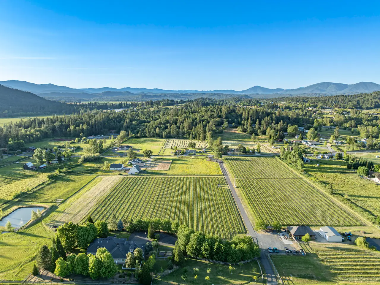 This picturesque Applegate Valley estate offers the perfect blend of luxury, beauty, & versatility. The 3,647 SF custom home features a split floor plan, chef's kitchen, vaulted ceilings, wet bar, rock fireplace, & pellet stove. Outdoor living shines w/lush landscaping, raised garden beds, orchard, two scenic ponds, & gated entry. A first-class building - currently used as a tasting room - adds flexible space for entertaining, hobbies, or future business use across 1,728 SF of thoughtful design. With rich soils, high-producing well, district water rights, & established irrigation infrastructure, the property is ideal for homesteading, livestock, & other agricultural endeavors. The 8.25 net acre vineyard is planted w/Tempranillo, Viognier, & more. The 1,200 SF shop adds even more utility & options for this luxury farm! Currently home to Apricity Vineyard--brand & business not included - but all of the infrastructure & approvals are in place for a buyer to start their own wine business!