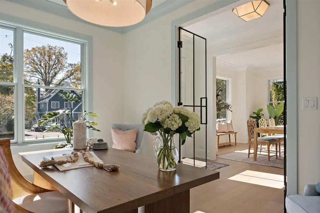 Just completed October 28th, this breezy, bright, and beautifully coastal new construction by one of the North Shore's premier builders captures the essence of modern beachy living. From the moment you arrive the sea salt blue shutters set the tone for what's inside: a sun-kissed sanctuary where craftsmanship meets coastal charm. Soaring ceilings, hand-beveled wide-plank white oak floors, Marvin windows, Ann Sacks tile, and layers of quartz and fine white marbles, all woven together with exquisite millwork and a refined, airy palette. Foyer opens to a coastal-inspired office wrapped in soft pale blue cabinetry and custom glass French doors. Formal dining room connects seamlessly to a fully outfitted butler's pantry, leading into the show-stopping Chef's kitchen-straight out of a Serena & Lily magazine. Thick white & light-veined quartz countertops, Visual Comfort pendants, custom cabinetry with polished brass accents, Thermador appliances and a soft blue island anchoring the room with seating for 5. Open-concept kitchen to family room centered around a black surround gas fireplace flanked by custom built-ins, bathe in sunlight through expansive floor-to-ceiling glass doors that open to the back patio and lush backyard. Mudroom with built in bench, gray and white checkered floors and sky-blue cabinetry and a designer level powder room complete this level. Second level with 4 ensuite bedrooms, each with its own beautifully tailored bath and fully built-out closets. Luxury primary suite a five-star retreat, featuring vaulted ceilings, large walk-in closet and a luxe white spa bath with dual vanities, walk-in shower, and soaking tub. Second level laundry room with double washer and dryer. Sun-drenched third floor offers endless versatility with bedroom, full bath, playroom, and office space. Fully loaded lower-level w/ a glass-enclosed gym with rubber flooring & mirrored walls, sleek wine cellar with custom racking and glass door, bedroom, full bath, and a large recreation room with custom media center and wet bar. This beachy new construction home delivers the ultimate living experience-a one-of-a-kind opportunity set in a prime Winnetka steps to it all!