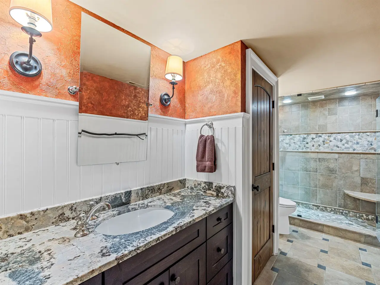 Gourmet kitchen with leathered granite island and Thermador appliances
