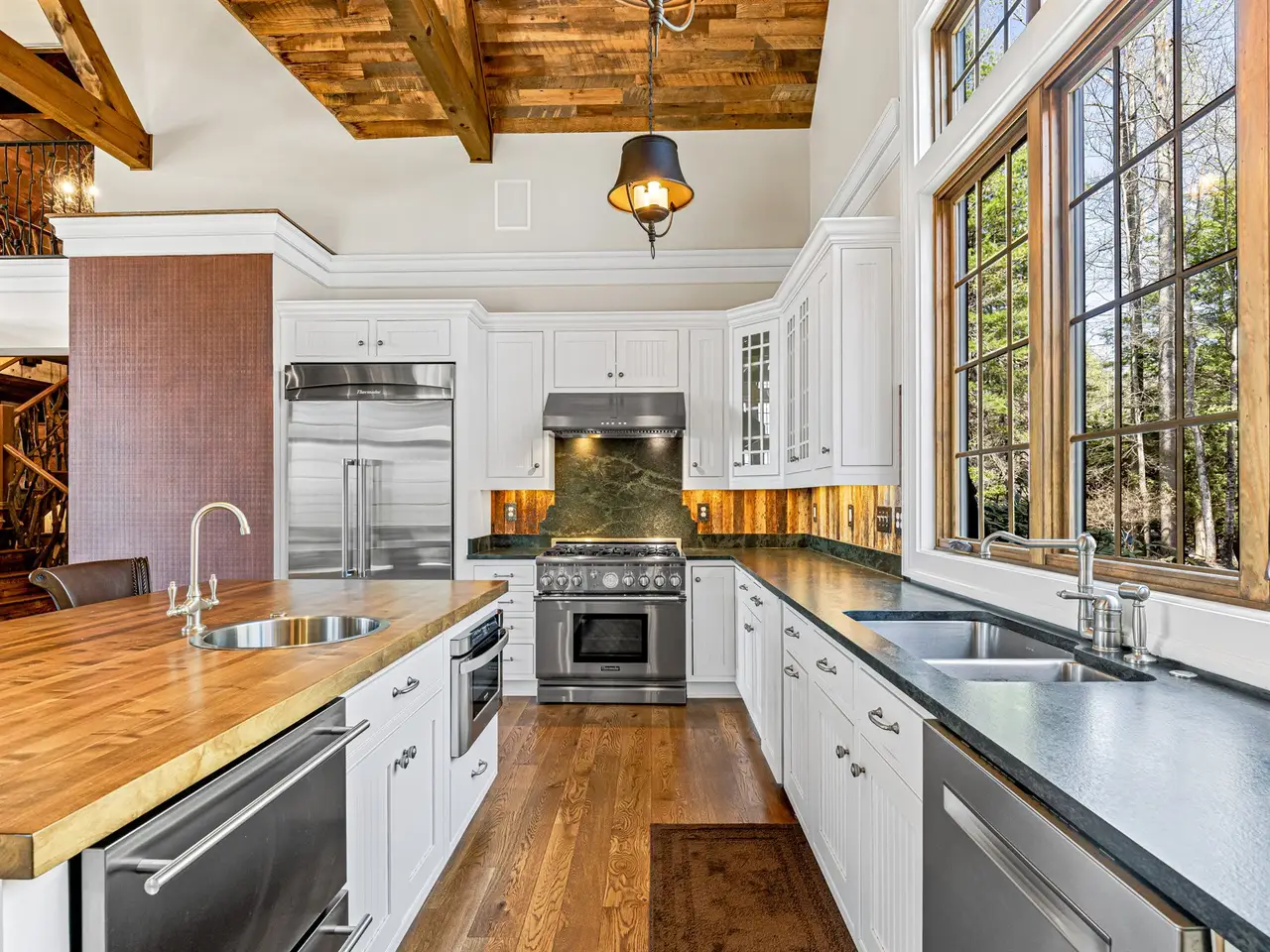 Welcome to 5019 Willow Road, a stunning 7.27-acre estate offering privacy, breathtaking long-range mountain views, and a peaceful retreat just 15 minutes from downtown Hendersonville and just outside the prestigious Champion Hills Country Club. This meticulously crafted home boasts an impressive custom design, with expansive windows showcasing panoramic views. Enjoy the serenity of 2 ponds with dock, and walking trails throughout the lush grounds. The large, level yard offers endless possibilities?whether you're envisioning a swimming pool, tennis court, or elegant garden escape. Inside, the main house features hand-painted walls, oak hardwood floors, reclaimed wood beams, and exquisite poplar leaf accents. Entertain in the gourmet kitchen. Thermador appliances. 3-car garage includes an apartment with a mountain-facing porch. Relax on the open-air patios or in the spacious primary suite with a luxurious bath. Magnificent sunset views await at this one-of-a-kind mountain estate!